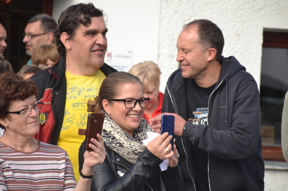 Poslední půlhodina pak byla vyhrazena na autogramiádu a focení s hvězdami Dejvického divadla, díky čemuž je v tuto chvíli jen málo klientů či zaměstnanců Charity Opava, kteří nevlastní selfie s Ivanem Trojanem a Klárou Melíškovou.