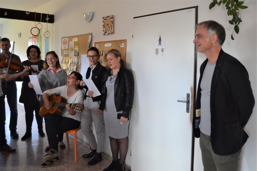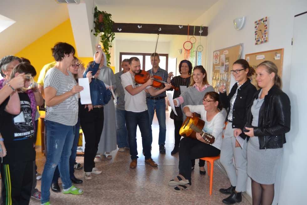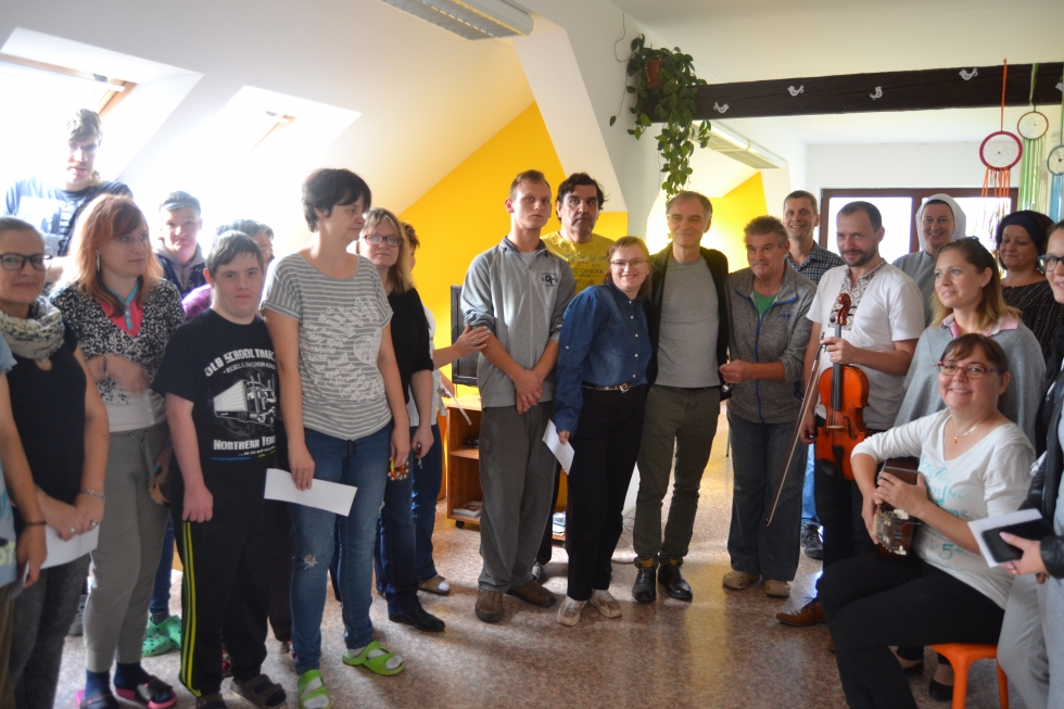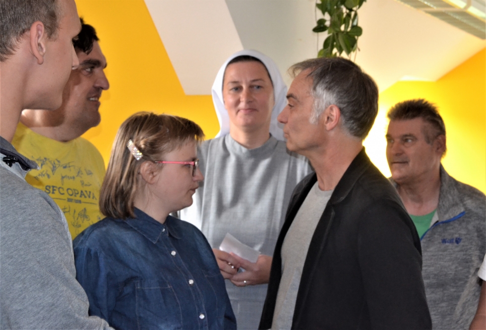 Největší překvapení ale vzácnou návštěvu čekalo v sociálně terapeutické dílně Radost. Pro tuto příležitost sestavené hudební těleso zaměstnanců a klientů zde zazpívalo píseň z filmu Anděl Páně 2 s originálním textem, oslavujícím příjezd Dejvického divadla do Charity Opava. Není divu, že hudebník Matěj Kroupa neodolal a přidal se hrou na violu.