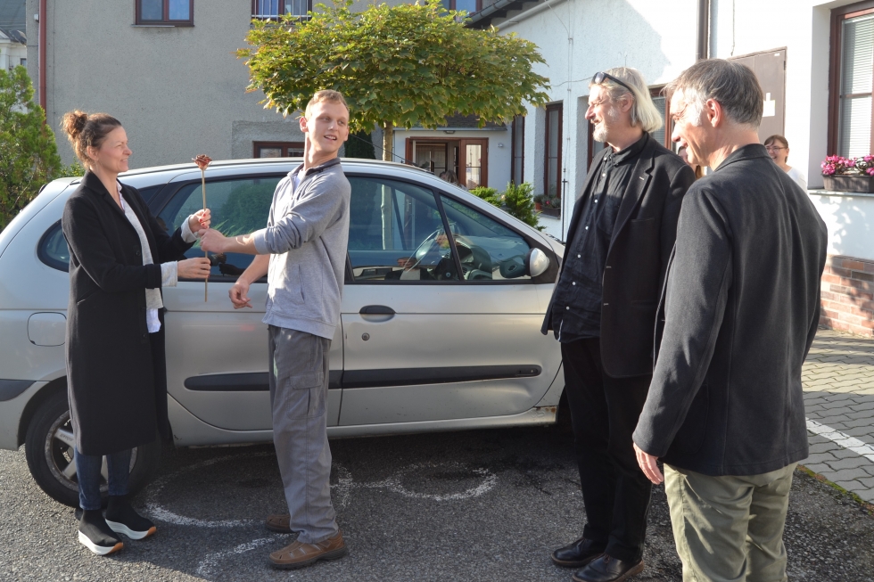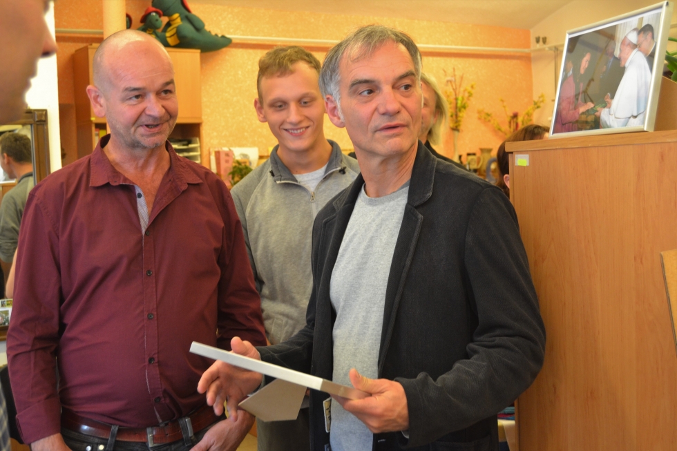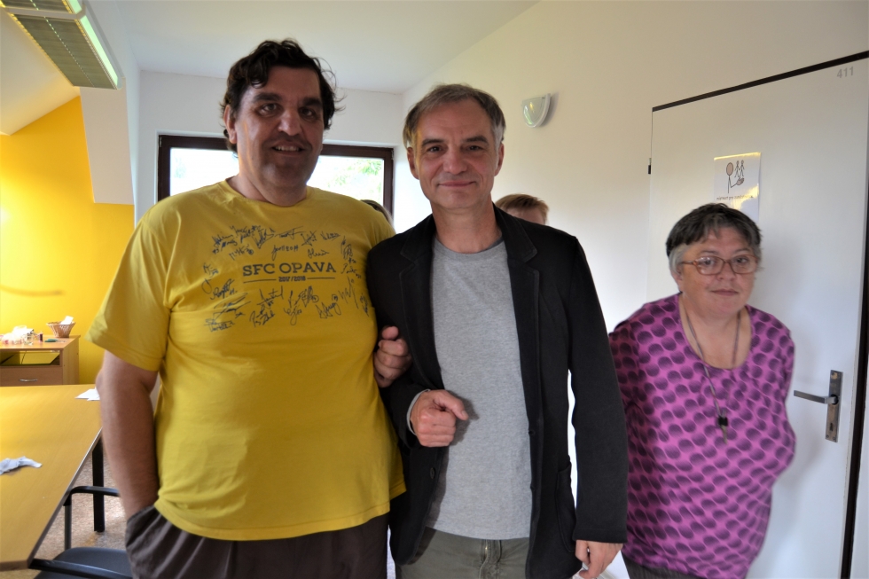 Dvacetiletý Jirka Salzmann, který je velký fanoušek seriálu Četnické humoresky, zářil štěstím. Právě na něj totiž ve čtvrtek 26. září dopoledne připadl úkol přivítat Ivana Trojana, Kláru Melíškovou a hudebníka a herce Matěje Kroupu na dvoře ředitelství Charity Opava v Jaktaři. Po krátkém posezení, při němž ředitel Charity Opava Jan Hanuš hosty seznámil s tím, co vše vlastně Charita Opava dělá, byl čas na vizitu dvou charitních středisek. Jako první si herci a jejich doprovod prohlédli Chráněné dílny sv. Josefa, kterými je provedl vedoucí Tomáš Rychlý. Tady už je čekaly dárky – krásné speciální podsedáky či výrobky z keramiky. Ivan Trojan si navíc odvezl tričko a ručník v barvách týmu Bohemians, jehož je fanouškem. Klokan na tričku má ovšem podobu jeho vlastního portrétu. .