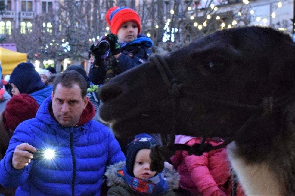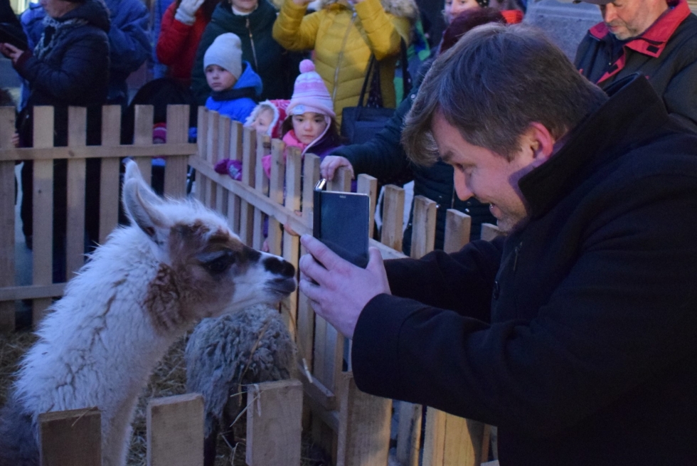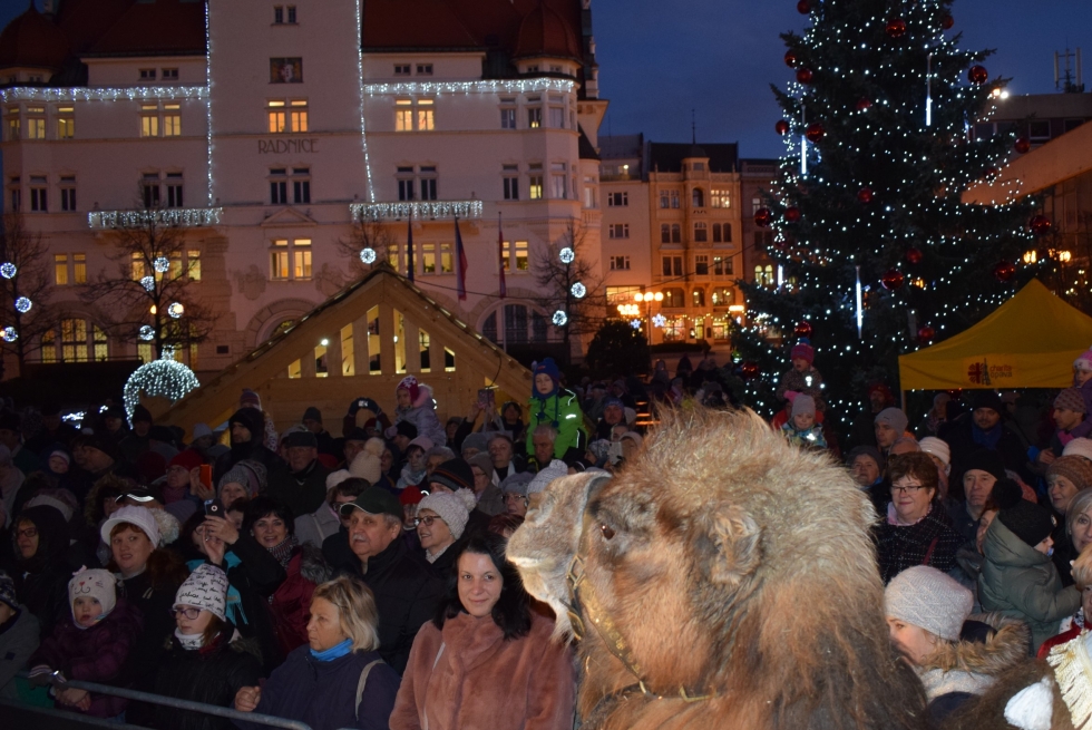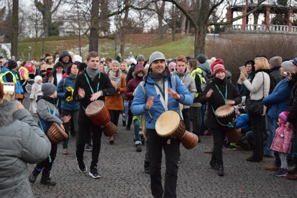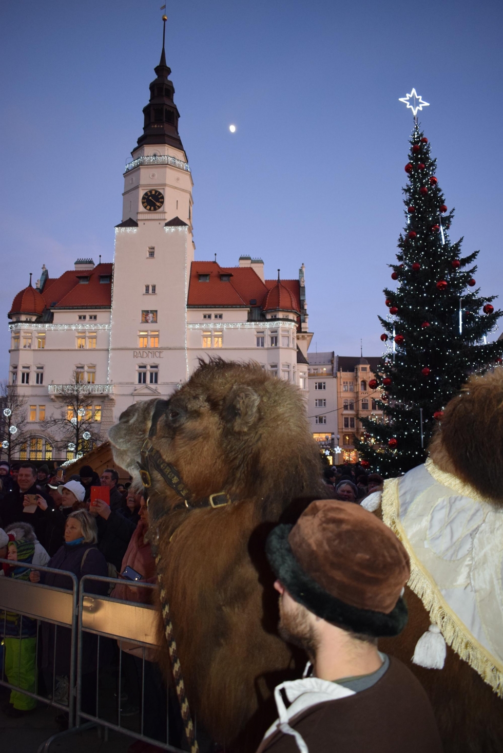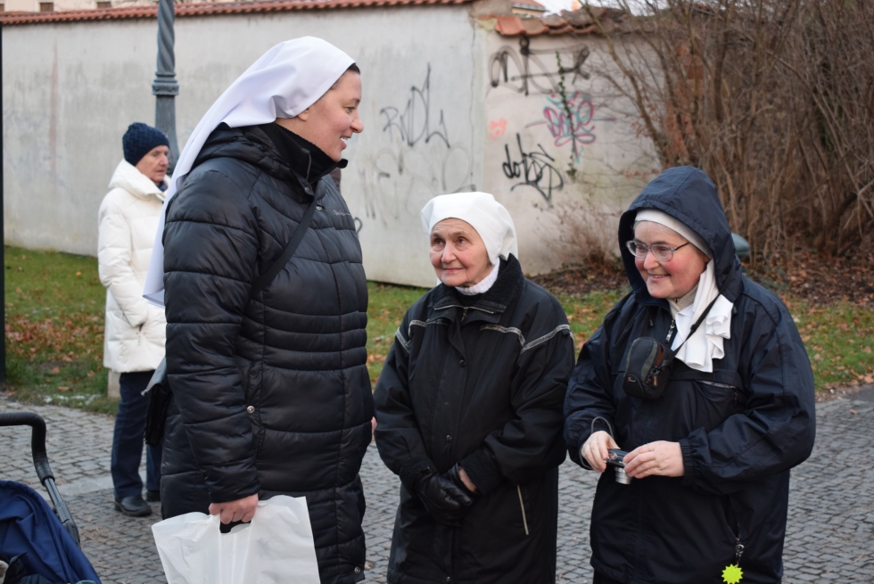 A poté, co zapíval pěvecký sbor Domino, už začal rytmicky do kroku hrát bubenický orchestr Boris a proud lidí, kteří chtějí být nápomocni svým blízkým, pokračoval na Horní náměstí. „Lidová moudrost praví – Bez Božího požehnání marné lidské namáhání,“ požádal pak před jesličkami na schodech Slezského divadla o požehnání koledníkům Jan Hanuš opavského děkana Jana Czudka..