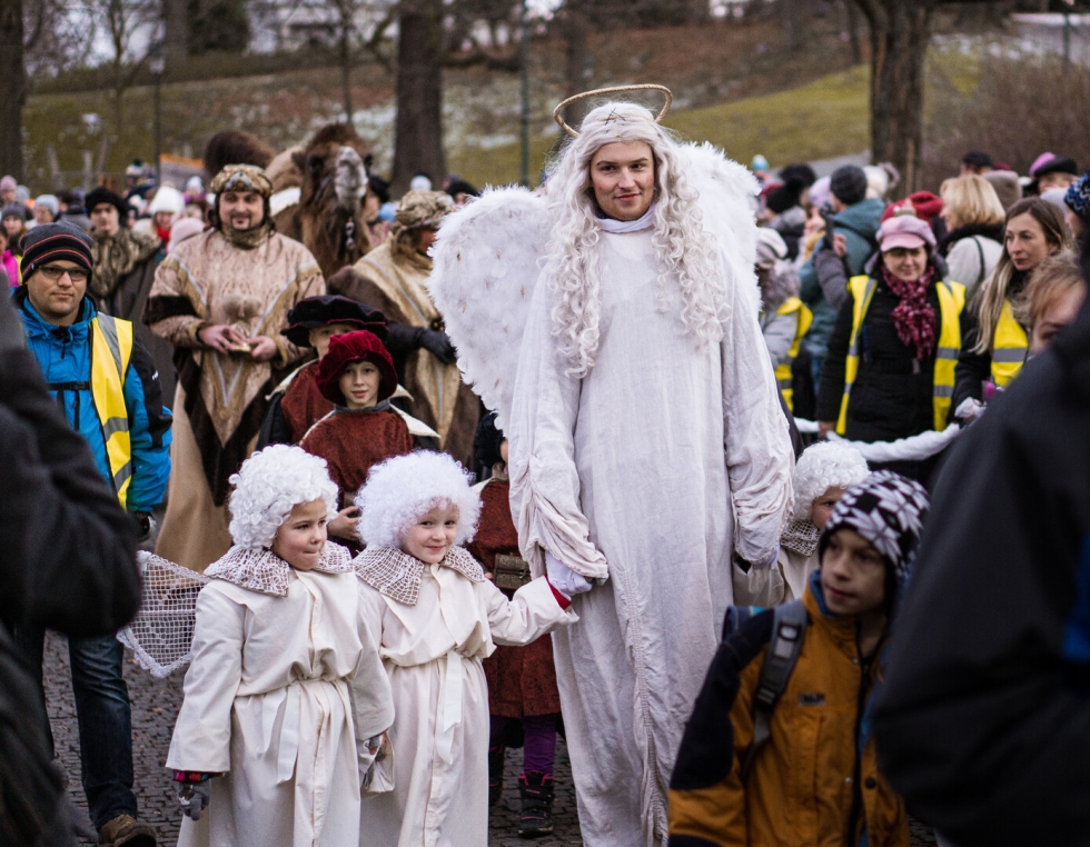 Zase nám bylo zkraje roku v Opavě hezky - a poděkování za zdařilou akci patří všem účinkujícím, hercům Slezského divadla v Opavě v čele s paní režisérkou Janou Andělovou, i Svaté rodině z Jaktaře i s malým Ježíškem, který si sice trochu poplakal, ale zato bude mít pěknou vzpomínku. A také pěveckému sboru Domino, bubeníkům z orchestru Boris a všem charitním zaměstnancům, kteří pomáhali průvod zorganizovat.