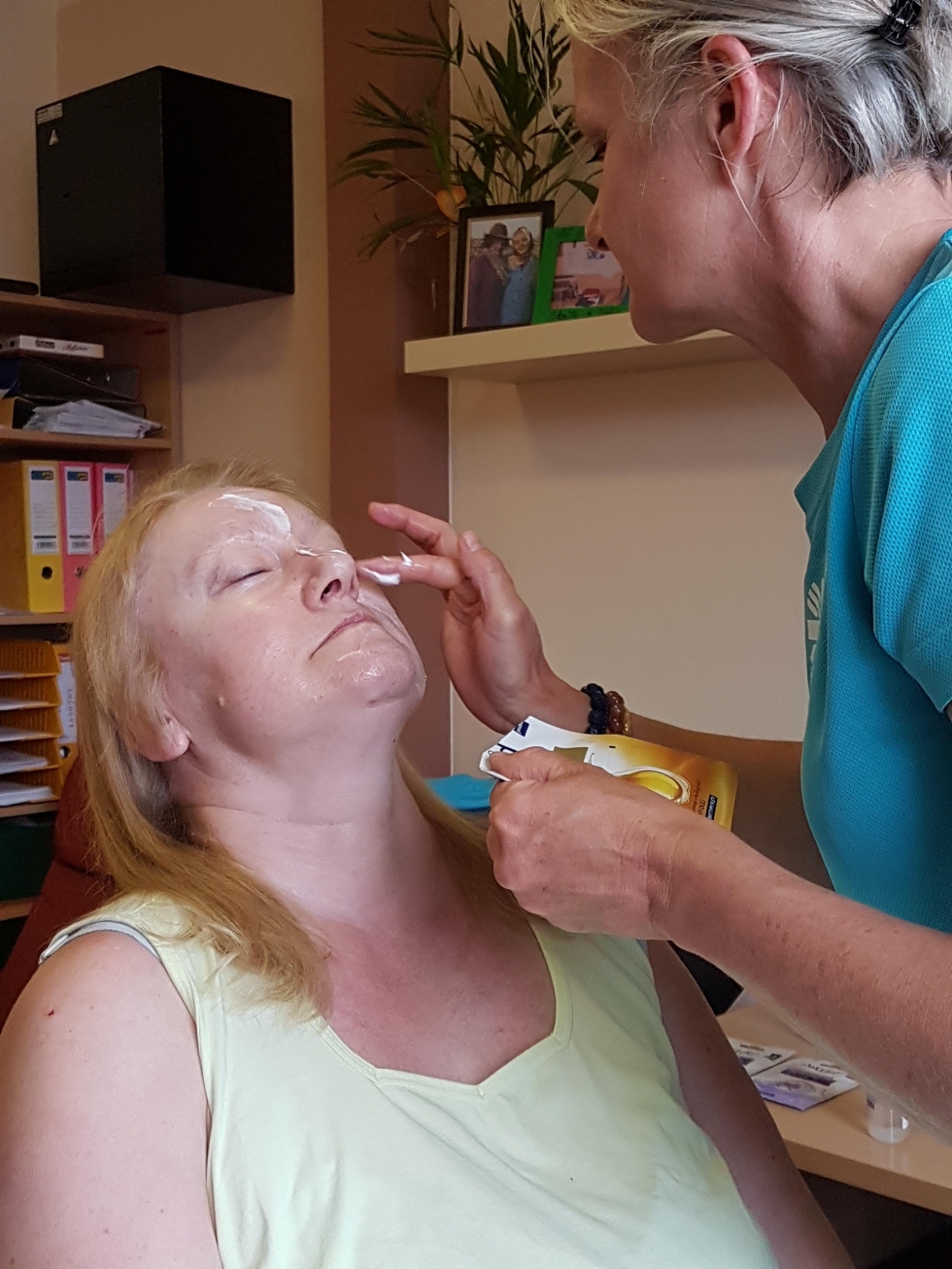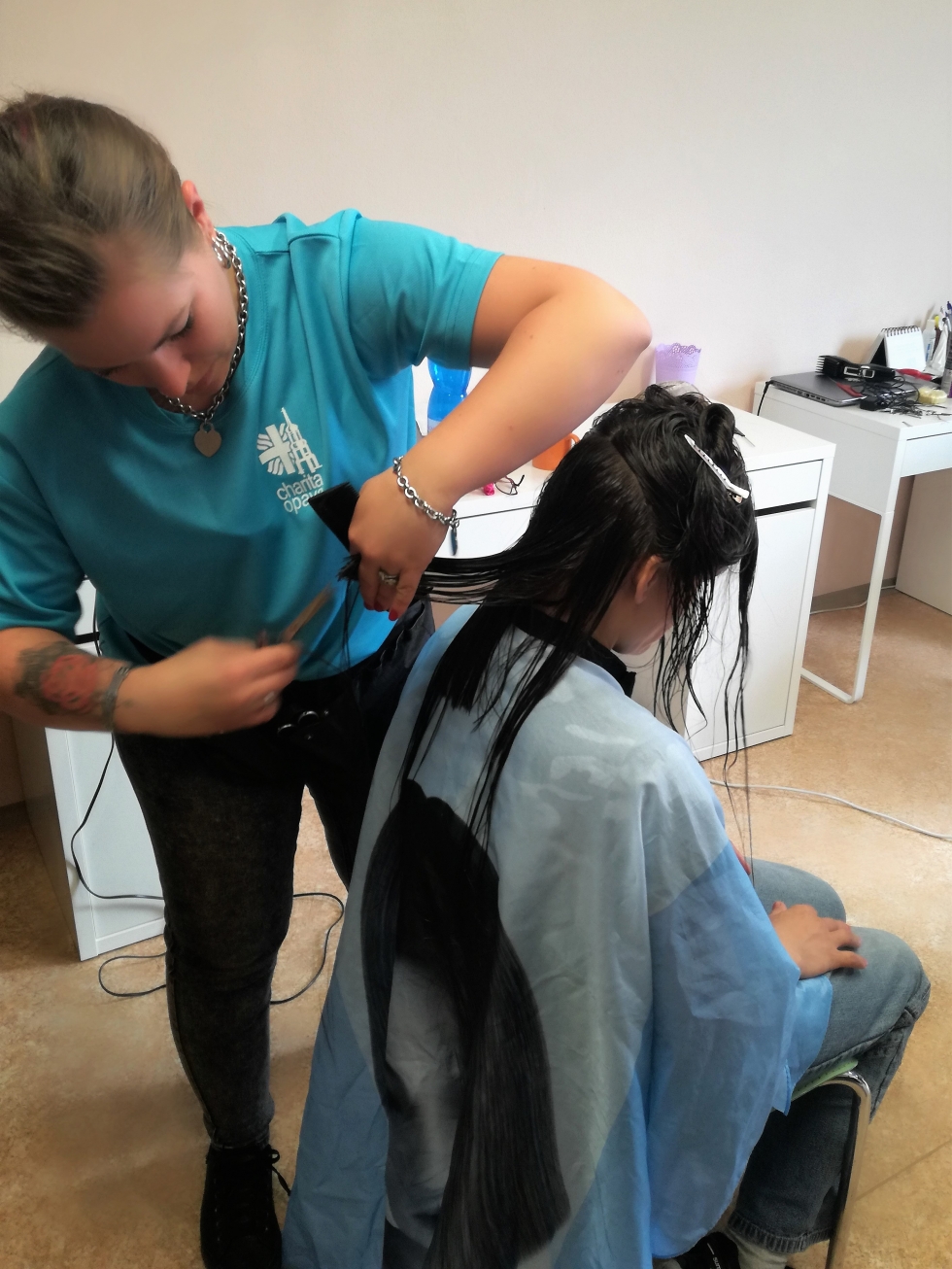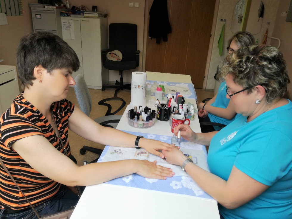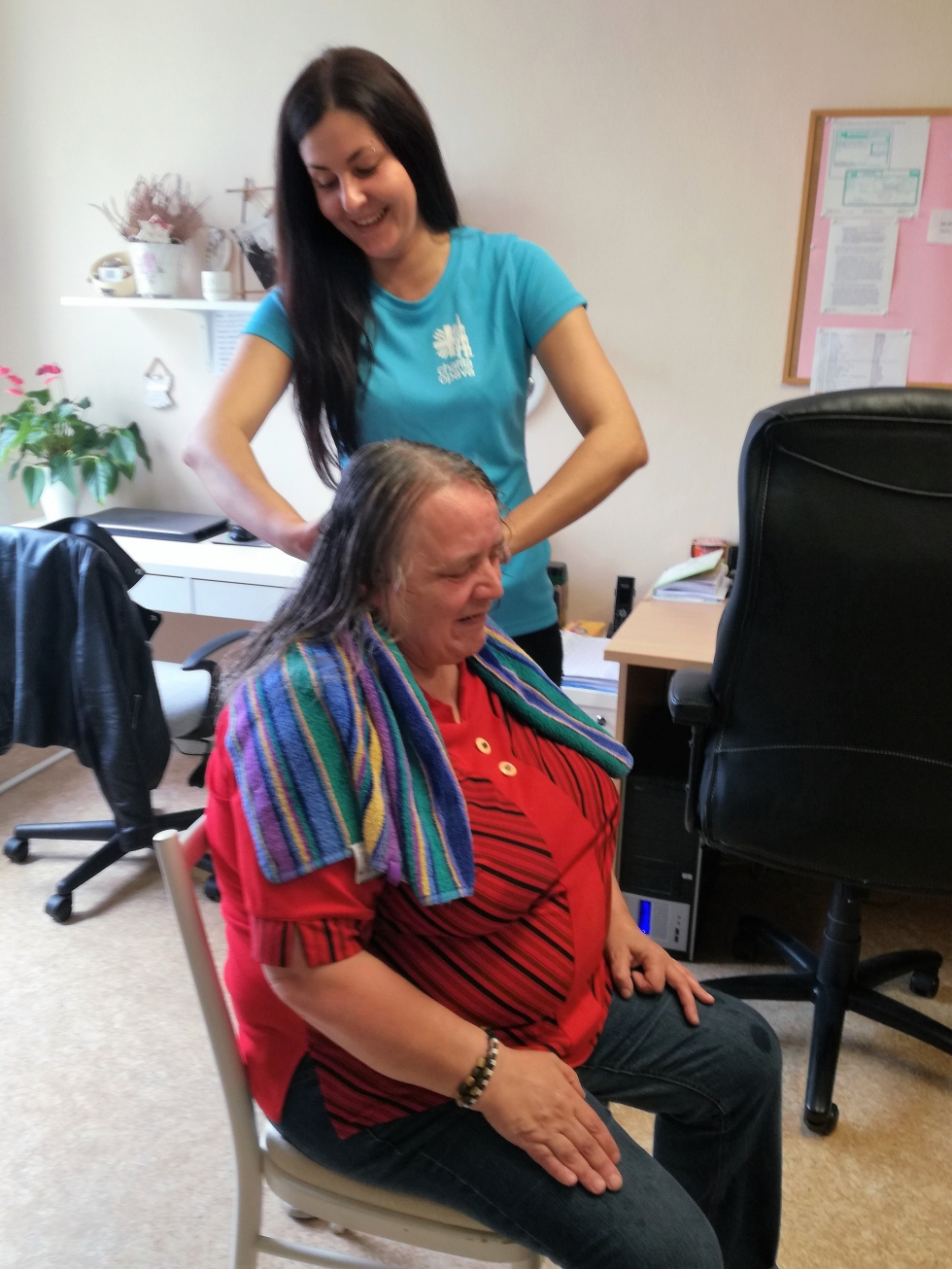 Na Kylešovské je pak hýčkal celý tým. Samozřejmostí bylo sladké i slané pohoštění s kávou nebo čajem, pak došlo na jednotlivé procedury. O masáže šíje se postarala paní Sylva z Wellness centra Charity Opava, kadeřnické služby zajistily šikovné vyučené kadeřnice z Radosti Barča a Klára a o mycí služby pečovala paní Světlana. Spolu pak zvládaly nejen mytí hlavy, ale také stříhaní, barvení a tvorbu účesů.