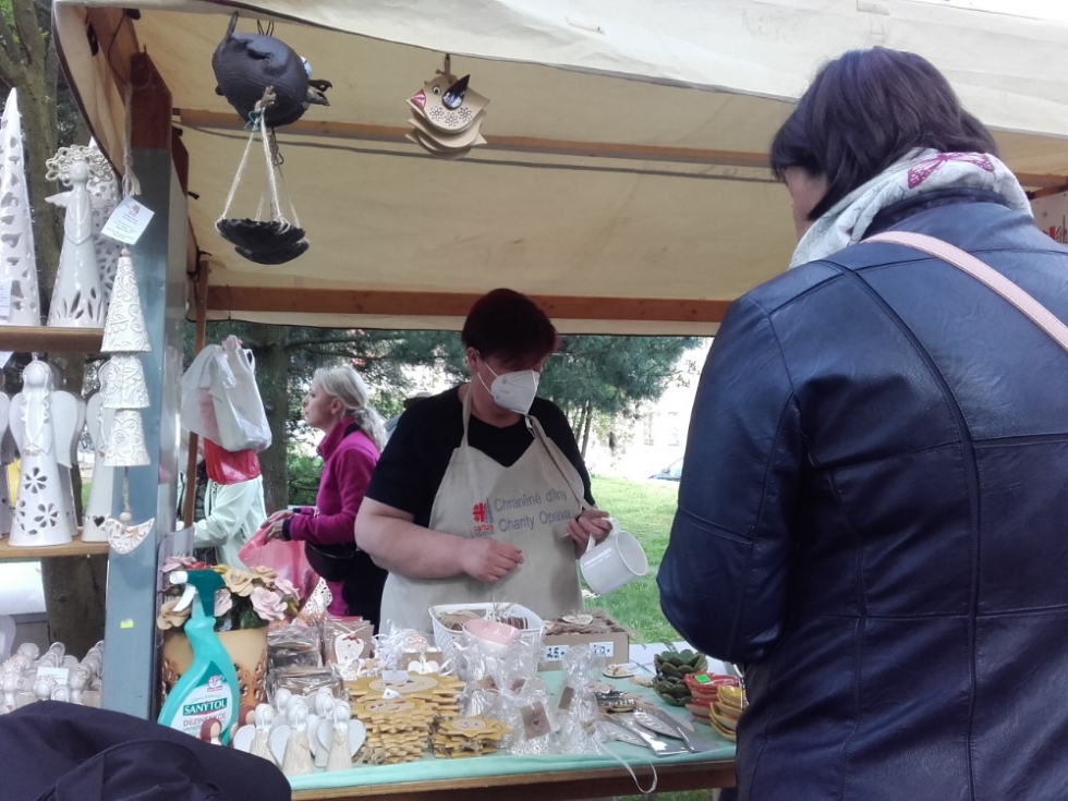 30.05.2021 - Po dlouhé covidové přestávce mohly Chráněné dílny Charity Opava v sobotu 29. května opět zájemcům nabídnout své zboží při venkovním prodeji. Díky postupnému rozvolňování prodávaly své výrobky na tradičním keramickém jarmarku v Kostelci nad Černými lesy.