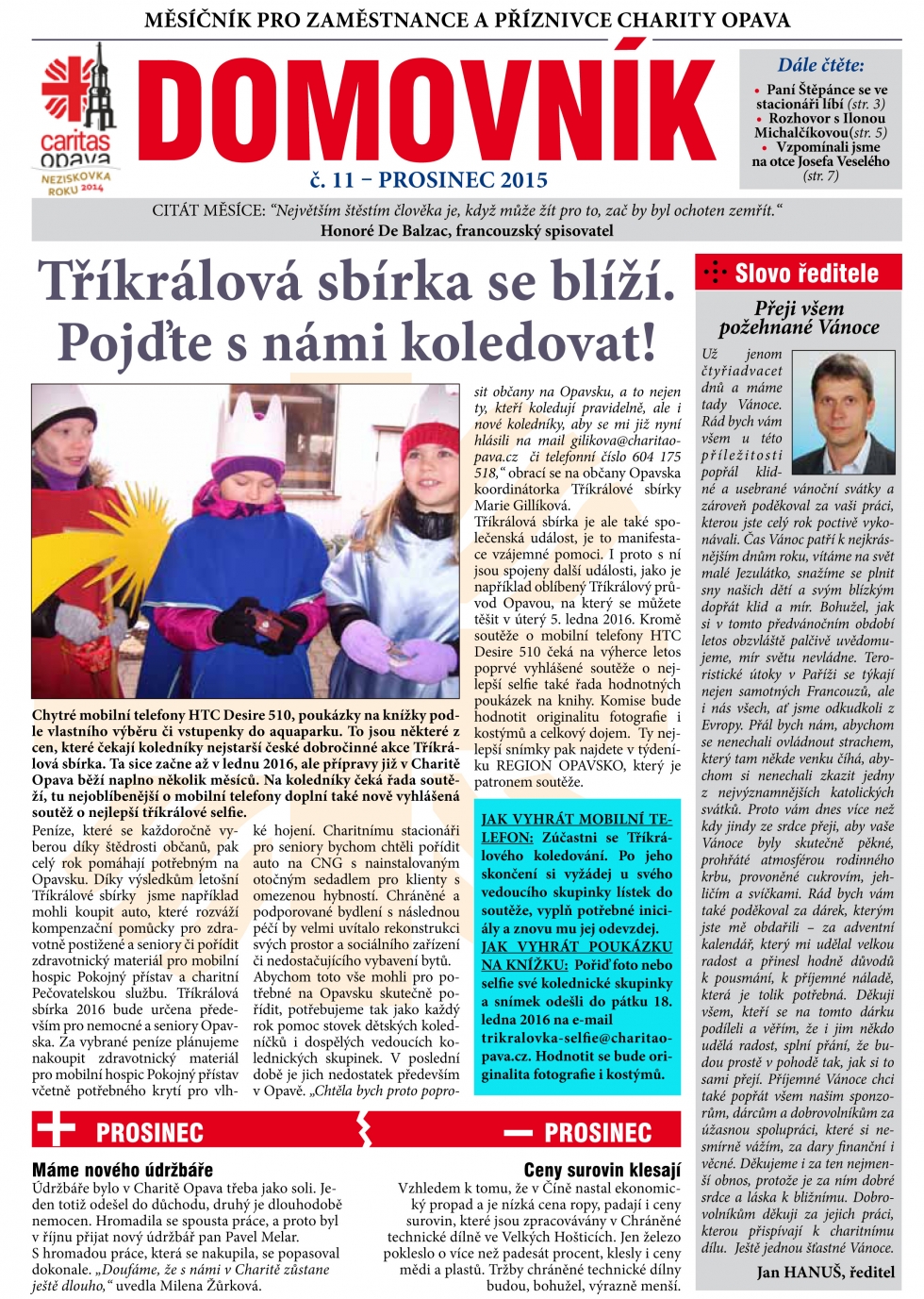 27.11.2015 - Prodejní výstava v Neškole, Soutěž MŮJ SVĚT je v plném proudu, rozhovor s Ilonou Michalčíkovou a další články a informace najdete v prosincovém Domovníku.