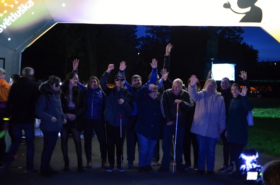 Účastníci běželi ztemnělým parkem s vypnutým veřejným osvětlením a kromě samotného závodu pro ně byl v Městských sadech připraven i bohatý doprovodný program i občerstvení. Vystoupily skupiny Poppers a Jarem být a na řadě míst si mohli lidé vyzkoušet aktivity přibližující život nevidomých, například stolní tenis pro nevidomé, tandemová kola nebo nejrůznější kompenzační pomůcky. „Velký zájem vzbudil náš stan, ve kterém si mohli návštěvníci pod vedením Vaška Burdy vyzkoušet zvukovou střelbu, tvořily se před ním dlouhé fronty,“ říká vedoucí Domu sv. Cyrila a Metoděje Zuzana Janků.