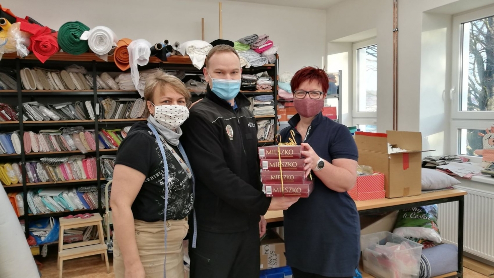 18.12.2020 - Dnes jsme navštívili zaměstnance šicí dílny Charity Opava s malou pozorností jako poděkováním za vynikající dlouhodobou spolupráci. Ještě jednou velké díky, máte naši velkou úctu za neúnavnou pomoc potřebným. (Facebook Městské policie Opava, 18. prosince 2020)