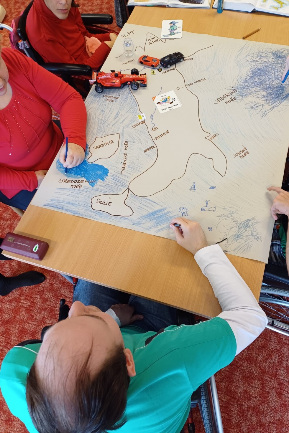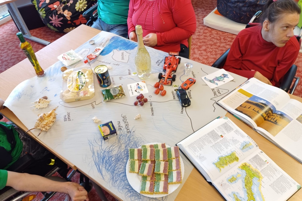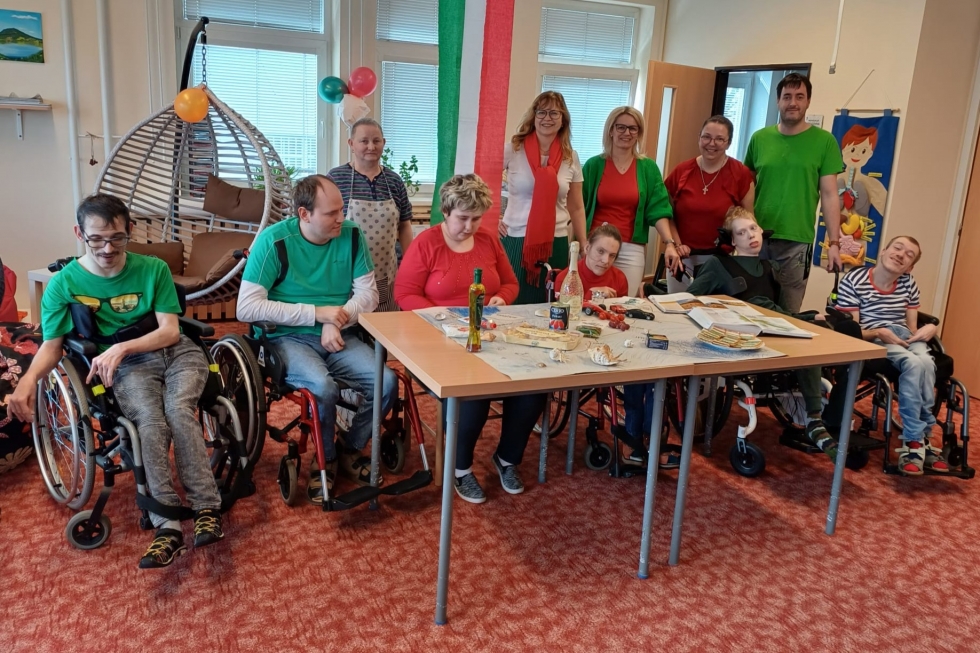 Pracovníci Mravenečku požádali rodiče klientů, aby je na určený den oblékli do barev italské vlajky, tedy zelené, červené nebo bílé. „A také my pracovníci jsme oblečení vyladili do těch správných barev,“ líčí vedoucí Mravenečku Jana Konopková. „Každý přinesl něco typického pro Itálii, někdo olivový olej, jiný těstoviny či prosecco. Jen ten den do práce nikdo nepřijel vozem Lamborghini nebo Ferrari, nejspíše ze skromnosti,“ dodává s úsměvem.