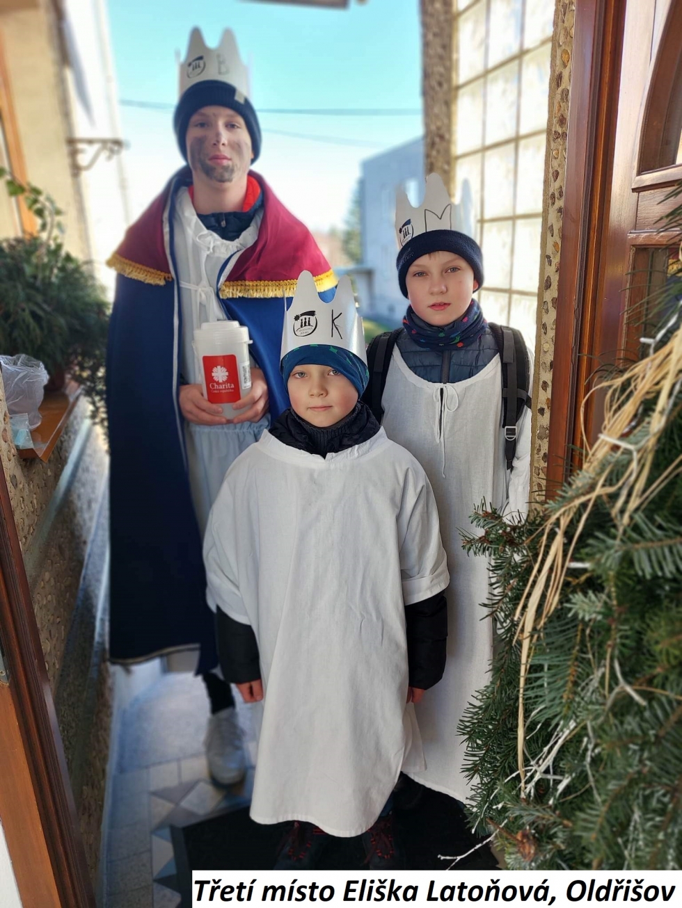 Pak nastal čas vyhlásit výherce soutěže o nejlepší tříkrálové foto, do které koledníci poslali více než šedesát snímků. Ceny jim předávali radní Charity Opava Jan Petkov a fotograf a zaměstnanec sociálně terapeutické dílny Radost Petr Kubesa, kteří zastoupili nemocnou redaktorku Terezu Pustkovou. Vítězové obdrželi knižní poukázky do Karmelitánského knihkupectví v Opavě a jejich fotografie otiskne týdeník REGION OPAVSKO, který je partner soutěže. Autory vítězných fotografií jsou: 1. místo Lucie Martínková z Velkých Hoštic, 2. místo Adéla Gracová ze Stěbořic a 3. místo Eliška Latoňová z Oldřišova. Komise také udělila zvláštní cenu za technické provedení Ludmile Kuzníkové z Opavy.