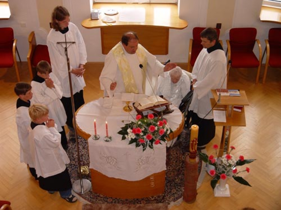07.07.2008 - V odpoledních hodinách se v sobotu 5. července uskutečnila v prostorách Domu pro zrakově postižené ve Vlaštovičkách oslava svátku patronů tohoto Domu – sv. Cyrila a Metoděje. Přestože tomu zpočátku počasí nenapovídalo - vždyť celé dopoledne bylo zataženo a pršelo, ještě v průběhu slavnostní mše se mraky na obloze rozestoupily a po zbytek odpoledne již svítilo hřejivé sluníčko.