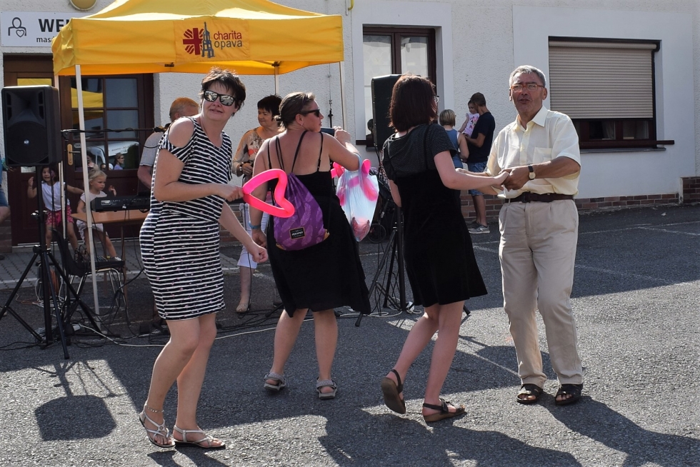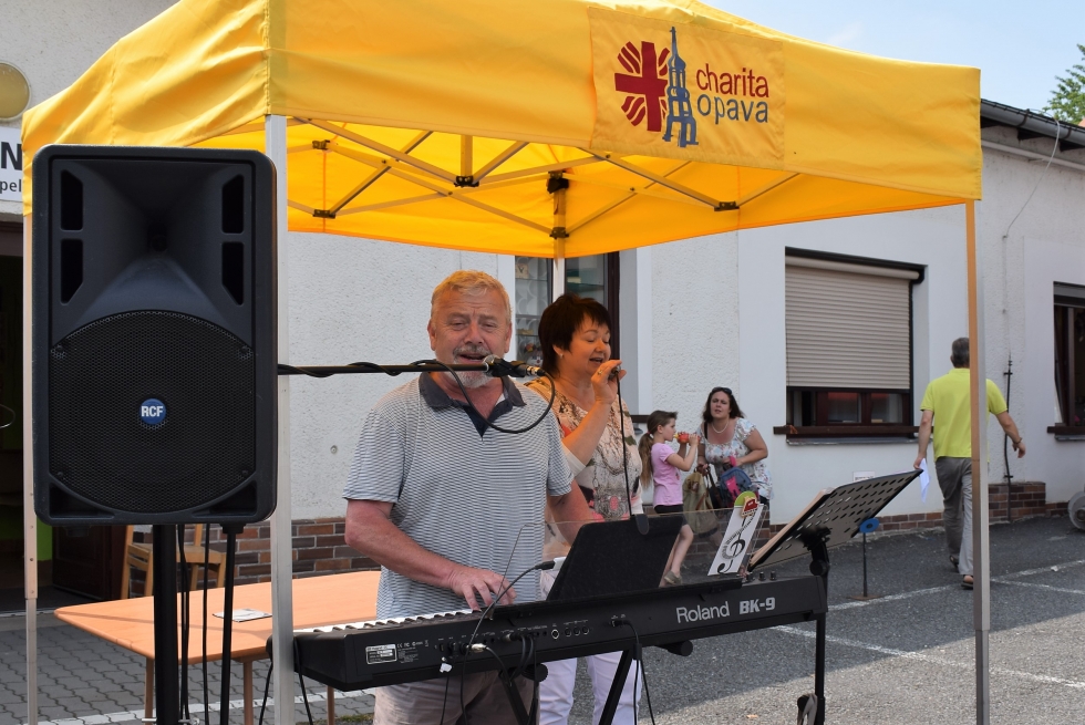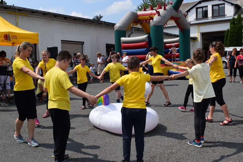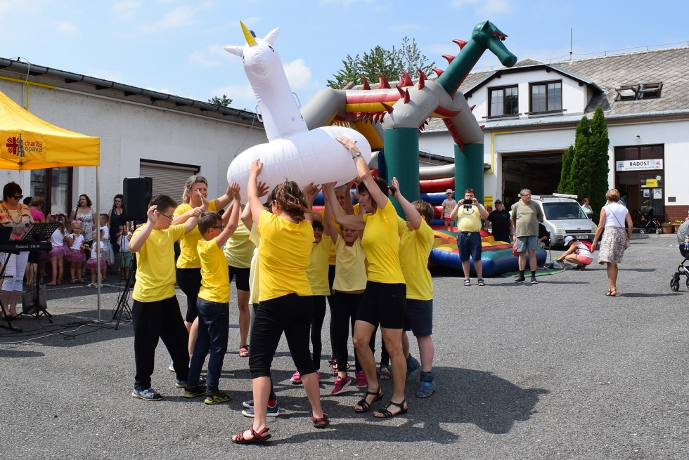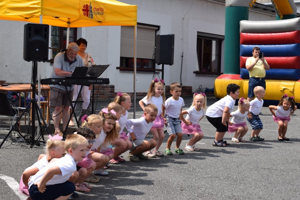 Kdysi bylo pravidlem, že Charitě na Sluníčkové odpoledni prší. To už ale dávno neplatí – stejně jako loni jsme si objednali krásné počasí. Stále více lidí, kteří na tuto akci každoročně přicházejí, si to určitě zaslouží. Sluníčkové odpoledne je totiž kromě vítání prázdnin také poděkováním koledníkům Tříkrálové sbírky. A ti si mohli vybírat z velmi pestrého programu, ať už to byla jízda na poníkovi včetně projížďky kočárem po Jaktaři, skákací hrad, malování na obličej, minizoo v prostorách sociálně terapeutické dílny Radost, divadélko ze Základní školy ve Štítině či vystoupení dětí a mažoretek.