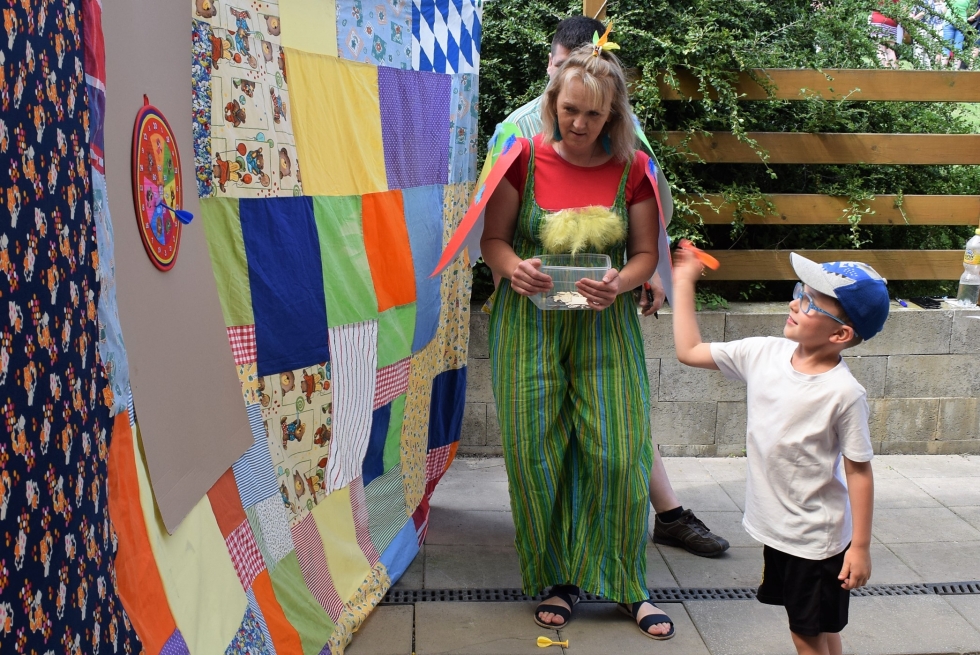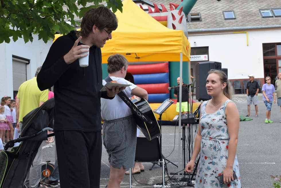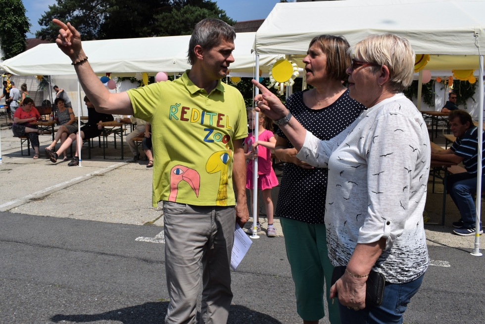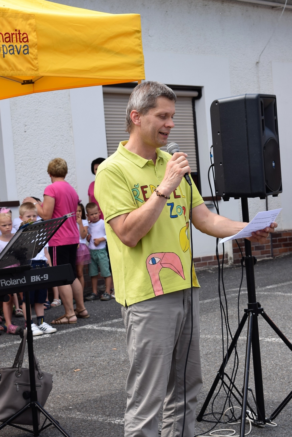 Atmosféru svátečního odpoledne dotvořily prodejní stánky s výrobky charitních chráněných dílen, bazar a samozřejmě bohatá nabídka moučníků, koláčů, opékaných uzenin, makrel a nápojů. Hlavním dětským programem ale byla velká zvířecí soutěž. Na jednotlivých stanovištích, nazvaných pro tentokrát pavilony, musely postupně splnit řadu úkolů ze zvířecí říše. Kdo vše zvládl, mohl si pak zajít pro odměnu.
