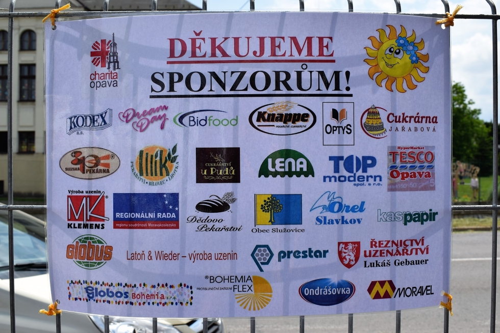 Tak rozsáhlá akce, na níž byly všechny atrakce zdarma, by se nemohla uskutečnit bez přispění mnoha lidí a přízně sponzorů. „Děkujeme sponzorům za občerstvení i odměny pro soutěžící děti,“ přidává díky jedna z organizátorek Sluníčkového odpoledne Svatava Bláhová. „Poděkování patří také všem organizátorům, kteří se podíleli na této stále populárnější akci, zaměstnanci sami vymysleli originální úkoly na jednotlivých stanovištích, která také obsluhovali často v originálních přestrojeních,“ dodává Svaťa Bláhová.