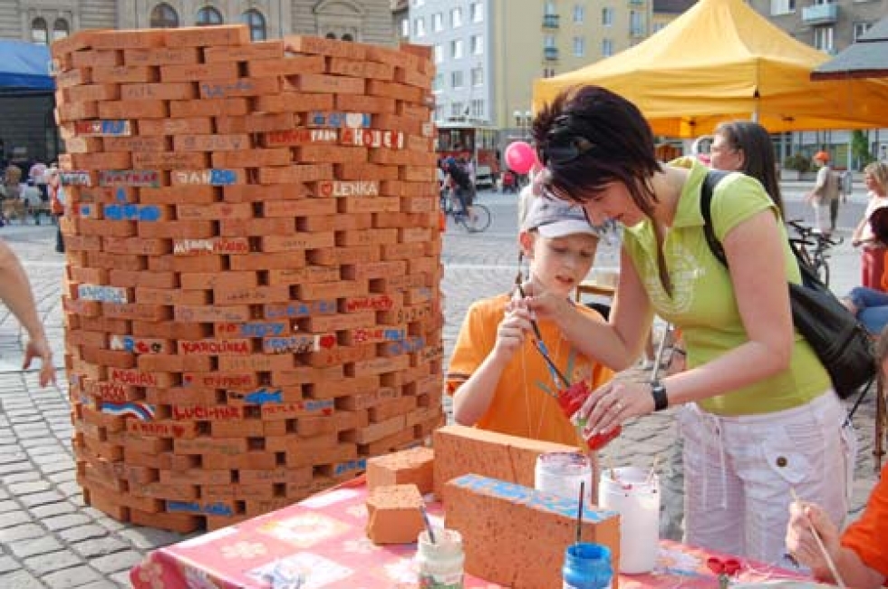 02.06.2008 - Věž solidarity a pochopení, tak by se dala nazvat věž z cihel, která rostla v posledním květnovém týdnu na Horním náměstí v Opavě. Věž složená z benefičních cihel byla tak vysoká, že zdaleka ne všichni lidé dokázali na horní patro vložit svou cihlu bez pomoci žebříku.