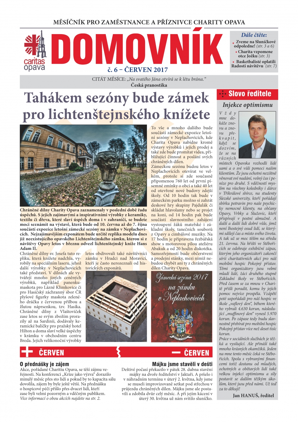 01.06.2017 - Řadu akcí chystá na červen Charita Opava. Pozvání na otevření zámecké sezóny v Neplachovicích, kde budeme vystavovat model zámku pro lichtenštejnského knížete Hanse Adama II., na vzpomínkou pouť za otce Jožku Motyku, nebo na tradiční Sluníčkové odpoledne pro děti i dospělé najdete spolu s dalšími zajímavostmi ze života Charity Opava v novém Domovníku.