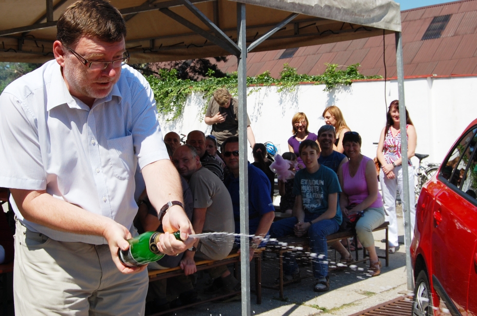 13.07.2010 - Primátor města Opavy a člen dozorčí rady Nadace ČEZ Zbyněk Stanjura předal Charitě Opava novou Fabii pro mobilní hospic Pokojný přístav