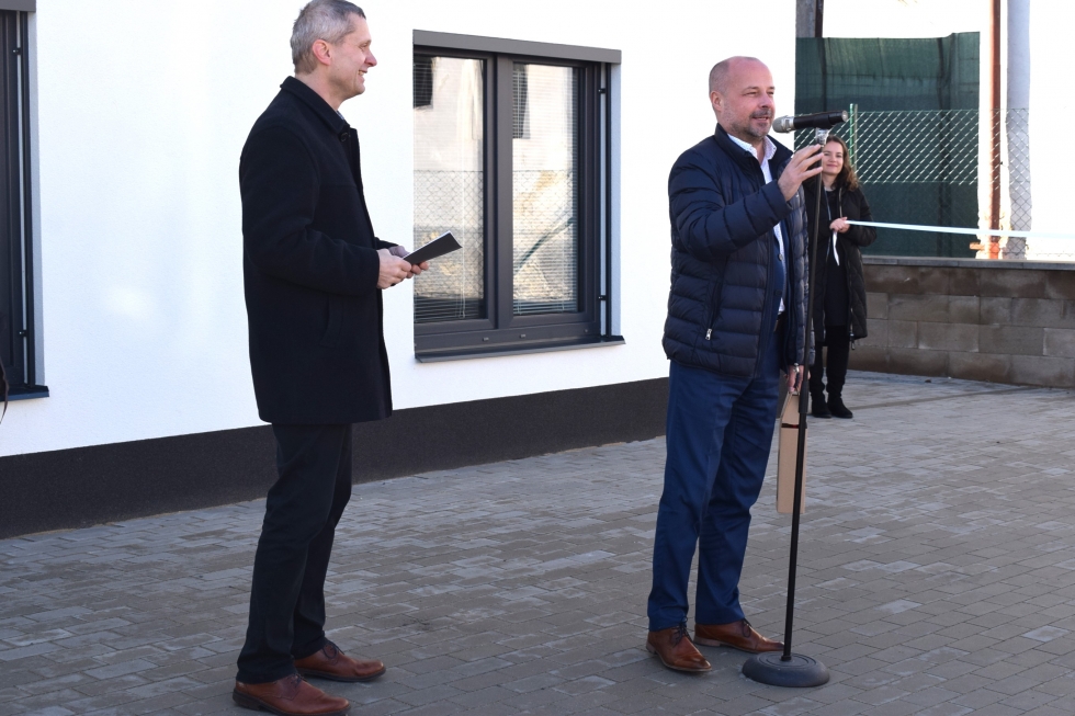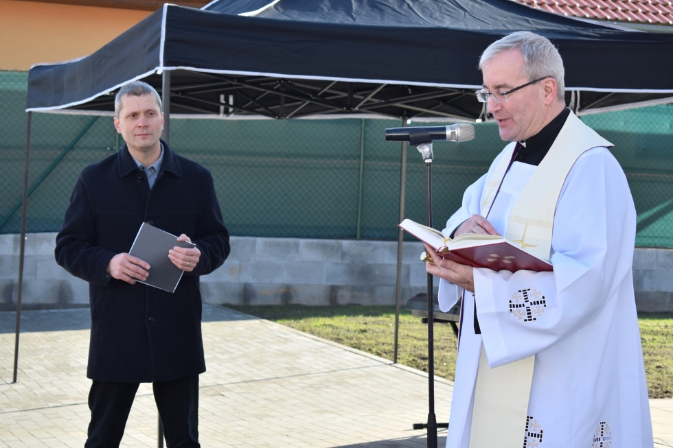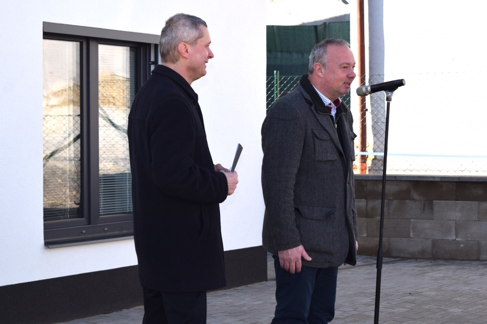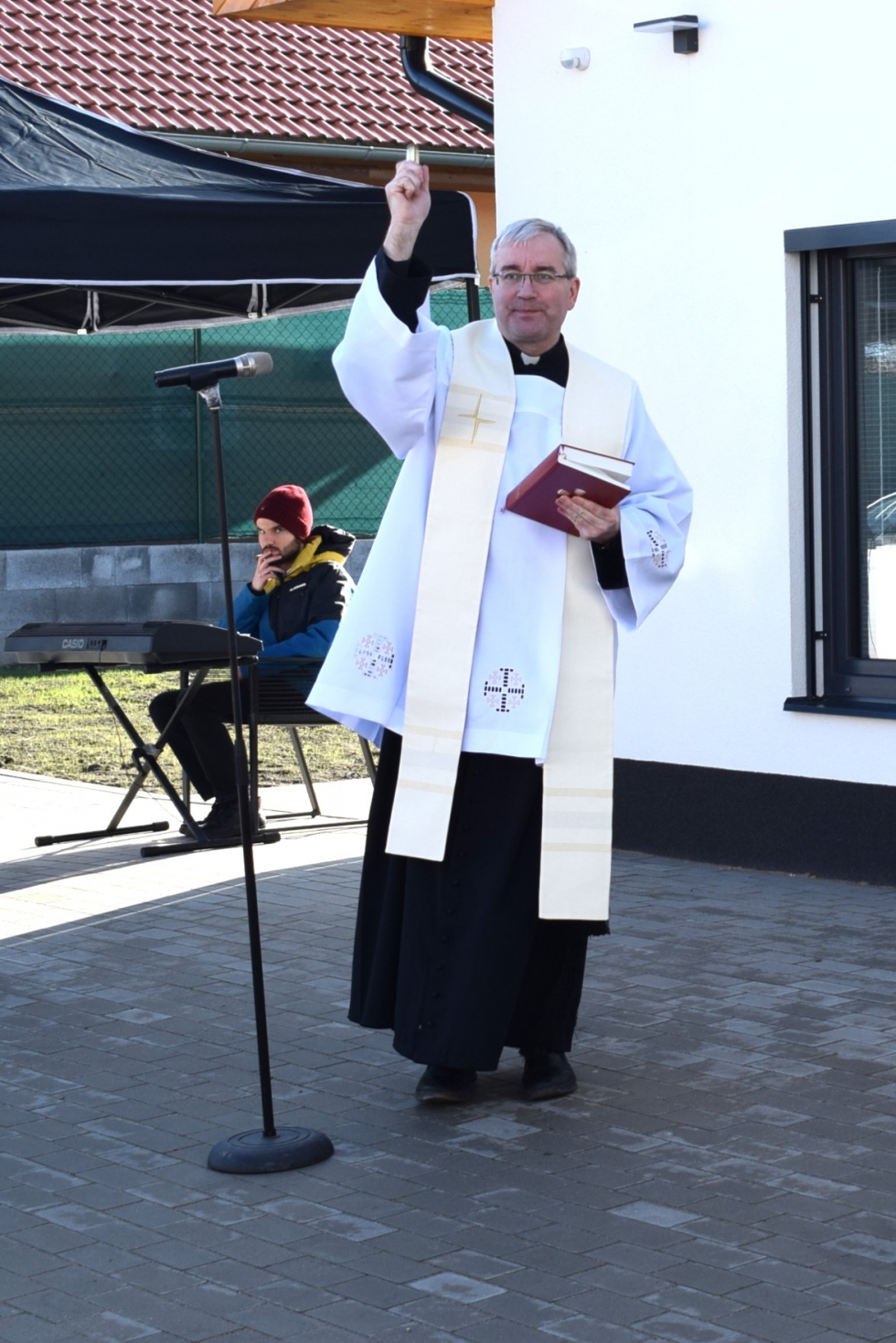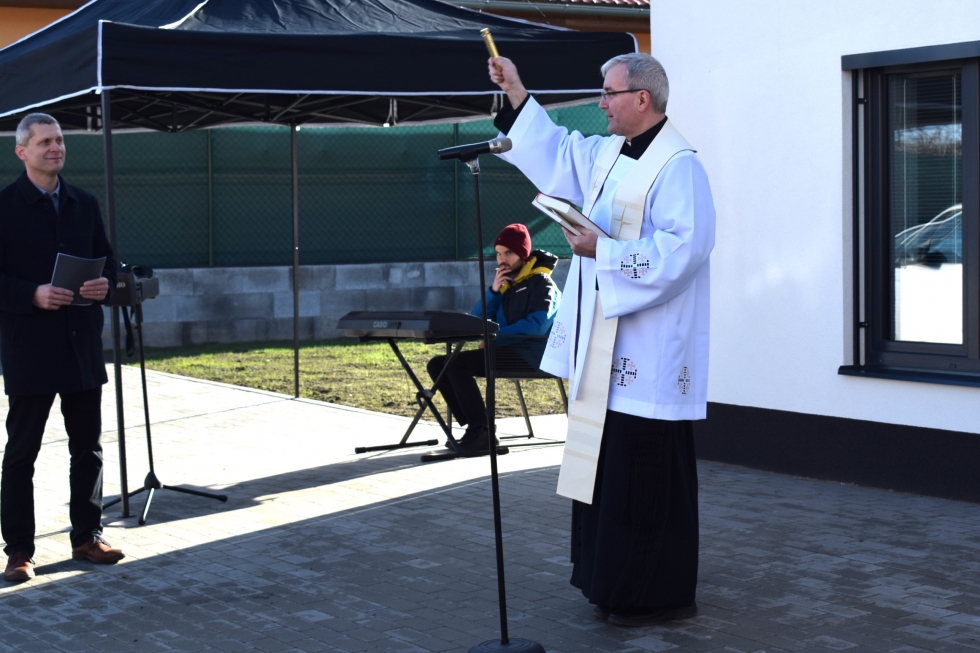 Stavba domu, která začala zkraje roku 2023, byla dokončena v rekordním čase. To před slavnostním požehnáním ocenil jak ředitel Charity Opava Jan Hanuš, tak i manažerka sekce sociálních služeb Pavlína Králová, která měla celou stavbu na starost. Náměstek hejtmana Moravskoslezského kraje Jiří Navrátil zase ve svém pozdravu mimo jiné pochválil vstřícnost starosty Vlaštoviček Reného Holuši i obyvatel Vlaštoviček. „Ne všude se stavba podobných zařízení setkává s pochopením veřejnosti, proto si místních za tento postoj velmi vážím,“ uvedl. Odvahu pustit se do tohoto projektu ocenil i náměstek opavského primátora Michal Kokošek či ředitel Charity ČR Lukáš Curylo. Ti také společně s Pavlínou Královou, opavským děkanem Václavem Koloničným a starostou René Holušou po požehnání dům symbolicky otevřeli přestřižením pásky.