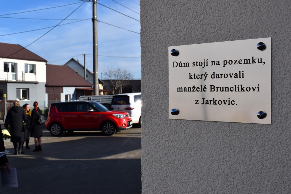 Manželé Brunclíkovi z Vlaštoviček, jejichž dar připomíná na novém domě pamětní deska, neměli vlastní děti, a protože se intenzivně účastnili duchovního i společenského života v nedalekém Domě sv. Cyrila a Metoděje pro zrakově postižené, rozhodli se, že by byli rádi, kdyby jejich majetek poté, až odejdou na věčnost, sloužil právě zdejším klientům. A i když se nakonec ukázalo, že starý a podmáčený dům bude lépe zbourat a na jeho místě postavit nový, který bude splňovat náročné podmínky pro chráněného bydlení, určitě by byli za to, co zde Charita Opava díky jejich velkorysosti vybudovala, velmi rádi.