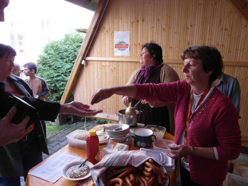 Venku hráli a zpívali manželé Hudečkovi a kdo měl zájem mohl si v doprovodu paní vedoucí Petry Hrbáčové čí její zástupkyně Zuzany Janků projít celý dům a seznámit se s pomůckami, jež zrakově handicapovaní obyvatelé v domě používají. Kromě Domu sv. Cyrila a Metoděje byly po celý den otevřeny prostory Chráněné dílny ve Vlaštovičkách. O občerstvení se z části postarali klienti domu, kteří sami např. připravili pro návštěvníky výborný guláš.