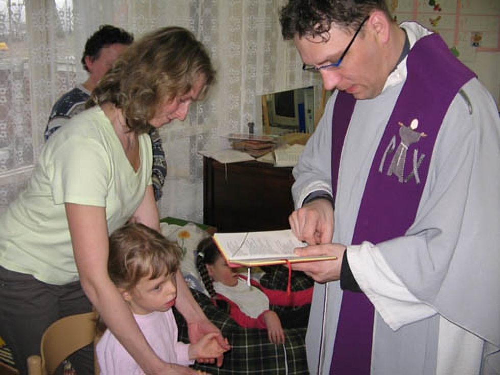 05.04.2006 - Povzbuzení, požehnání, svatopostní náladu přinesl do stacionáře Mraveneček otec Miroslaw Paluch – farář římskokatolické farnosti Svatého Ducha.