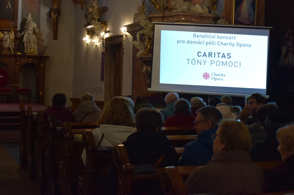 S nabídkou upořádat benefiční koncert přišel do Charity Opava sudický duchovní správce Aleš Písařovic, který je zároveň uměleckým vedoucím Kněžské gregoriánské scholy. Společné vystoupení s Akademickým pěveckým sborem Žerotín sbormistra Pavla Koňárka s názvem „Caritas – tóny pomoci“ slibovalo už od začátku mimořádný zážitek. Výtěžek benefice se pořadatelé rozhodli věnovat domácí péči Charity Opava, konkrétně na nákup velmi žádaných kompenzačních pomůcek.