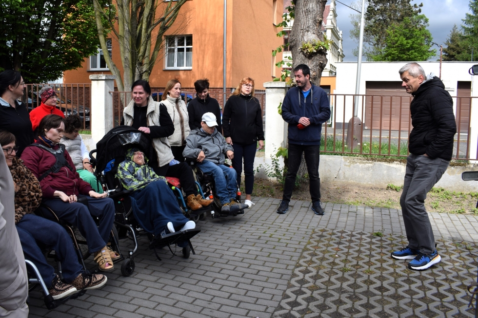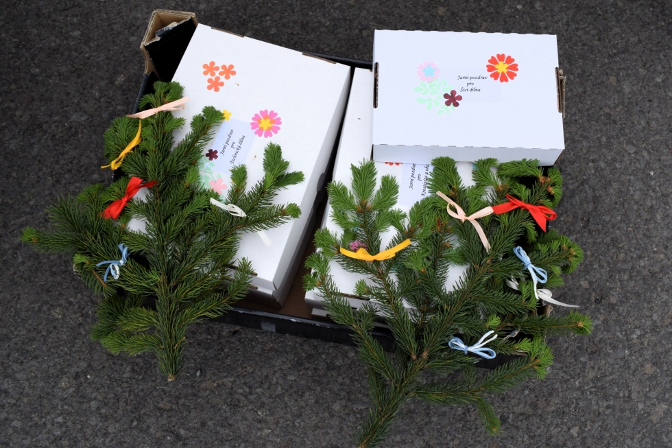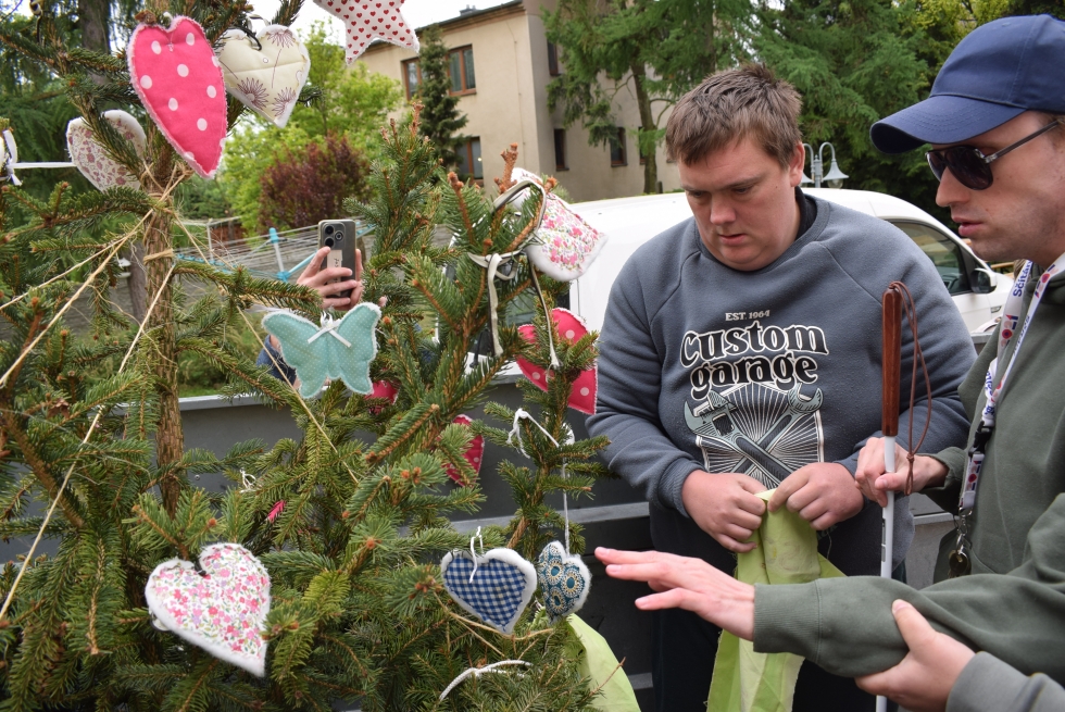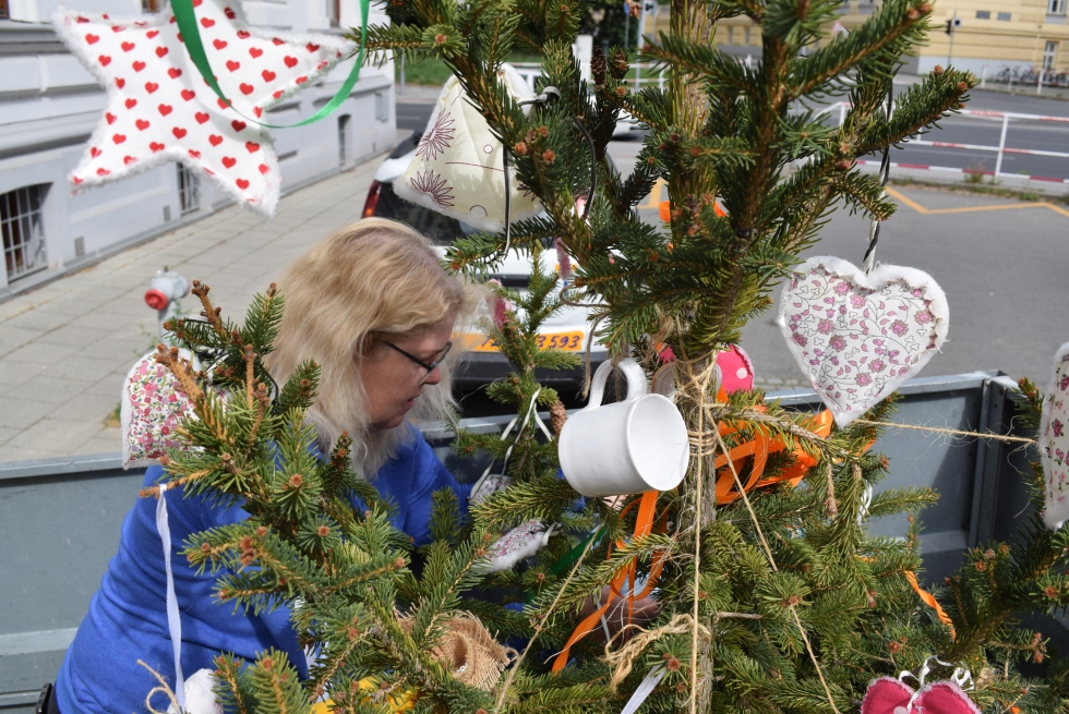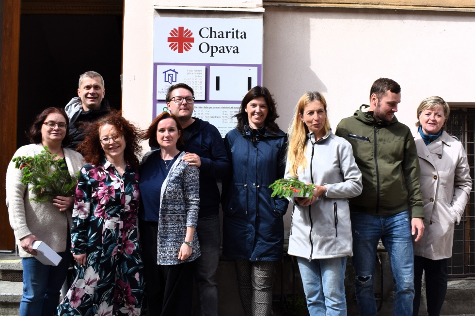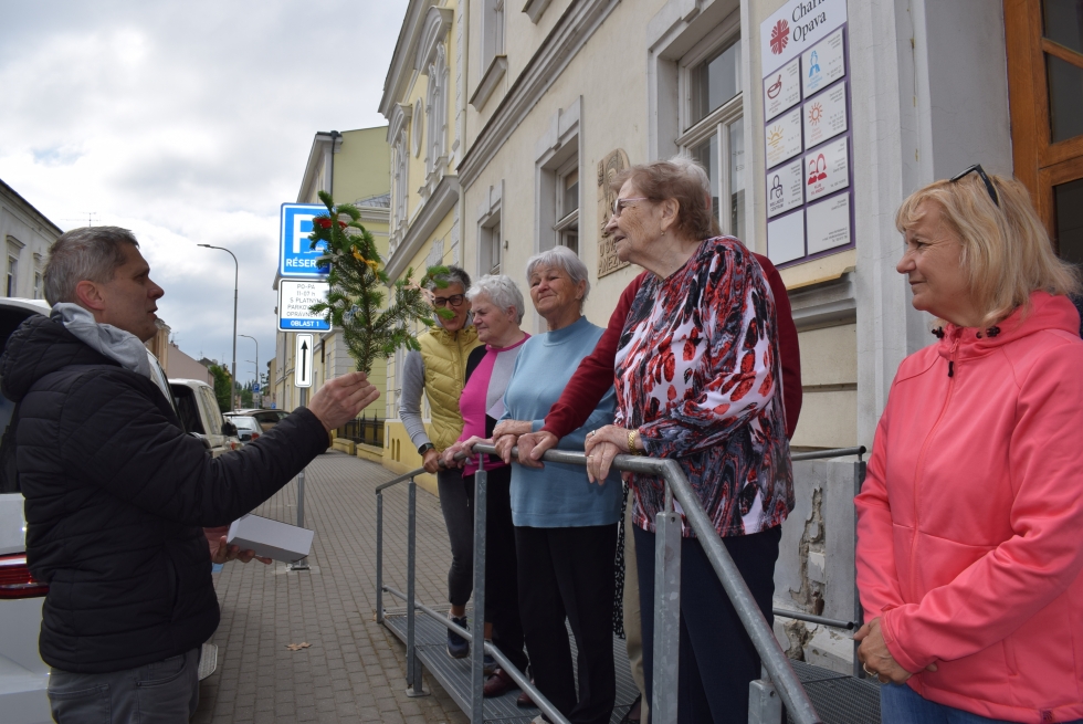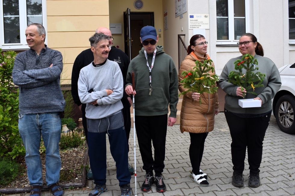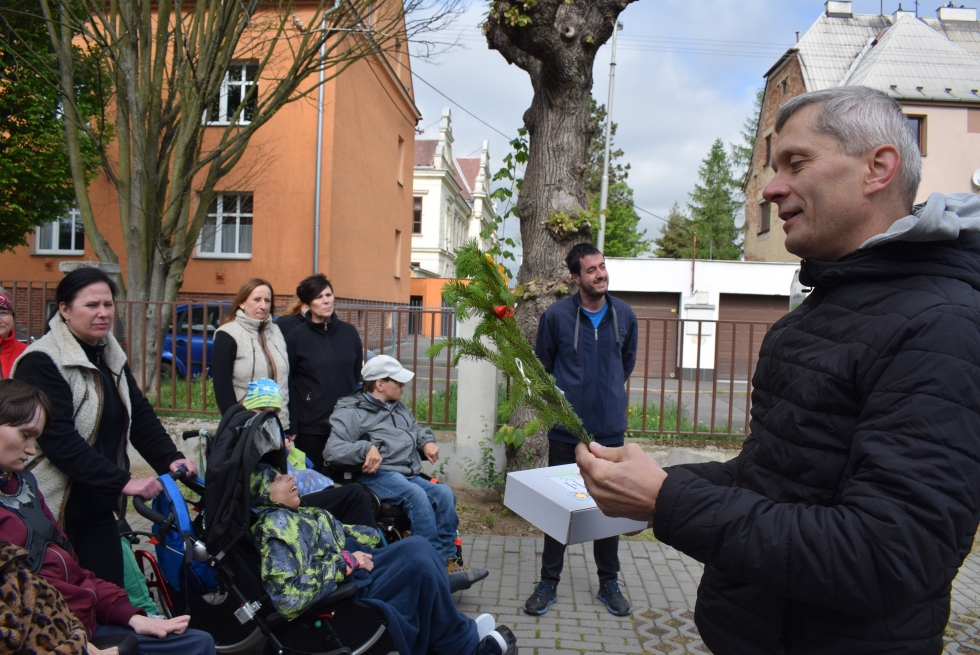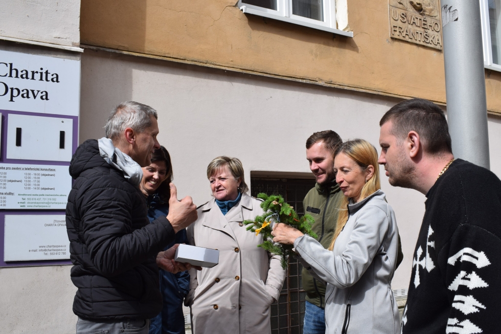 Hned ráno věnec a špici májky naložil ředitel Charity Opava na vozík za autem a mohla začít jeho pouť po jednotlivých střediscích. Ve Vlaštovce, Chráněných dílnách Charity Opava a na dalších místech už vždy čekali zaměstnanci i s klienty, kteří postupně přidávali své charakteristické stuhy. Mravenečci ke stuze přidali i básničku složenou pro tuto příležitost a osazenstvo Denního stacionáře pro seniory zase písničku. Odměnou byl všem balíček s dobrotami, které speciálně pro tuto příležitost napekly dámy pracující na charitním ředitelství.