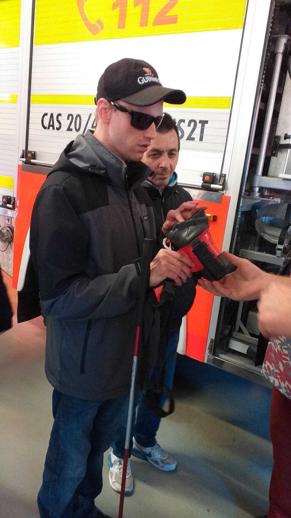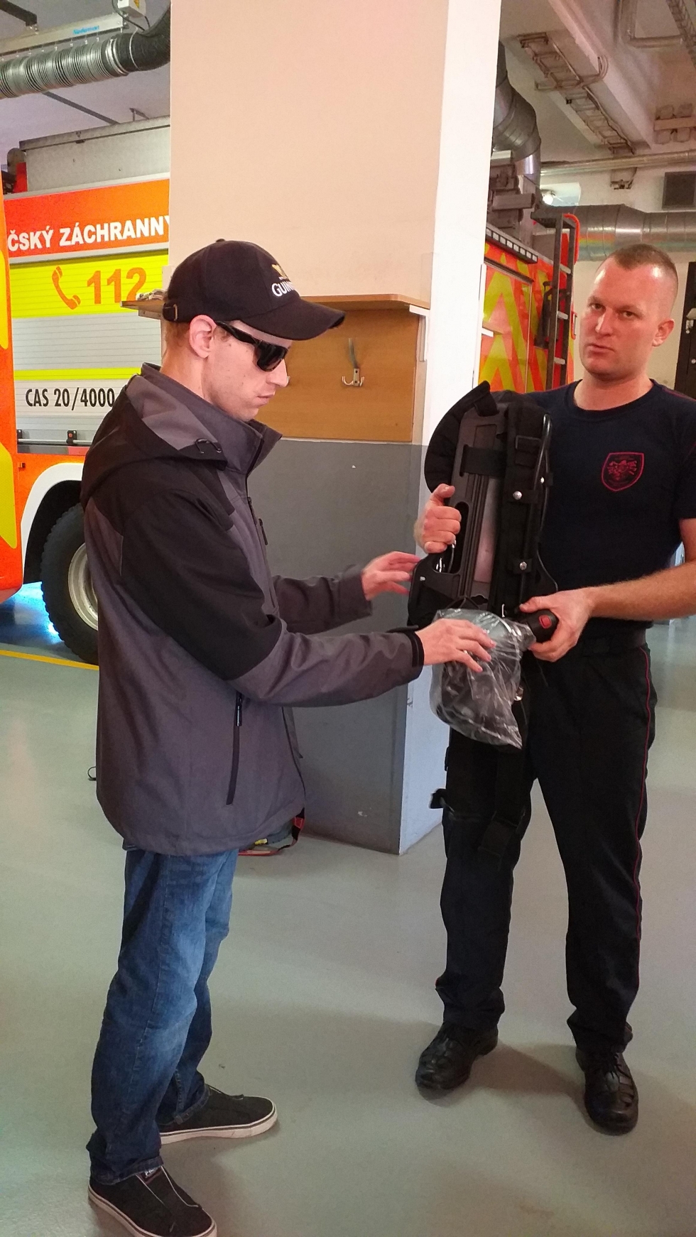 „Naši klienti si mohli obléct hasičské obleky, vyzkoušet si, jak těžký je dýchací přístroj nebo třicetikilové nůžky, jimiž hasiči vystříhávají zaklíněnou osobu z auta po nehodě, a osahali si také hadice a proudnice,“ popisuje návštěvu vedoucí Domu sv. Cyrila a Metoděje Zuzana Janků.