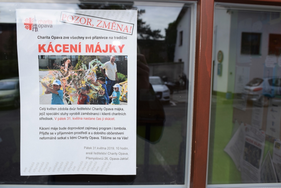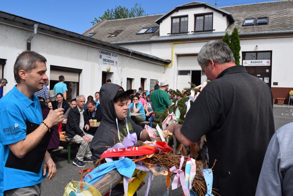 No a pak už šla májka k zemi, o což se kromě jiného postarali klienti Radosti. Ti také uřízli ozdobnou špičku a čas májky skončil. „Ale nemusíte být smutní, potkáme se tady zase za rok,“ pozdravil všechny na závěr vydařené akce, která pokračovala příjemným neformálním posezením, ředitel Charity Opava Jan Hanuš.