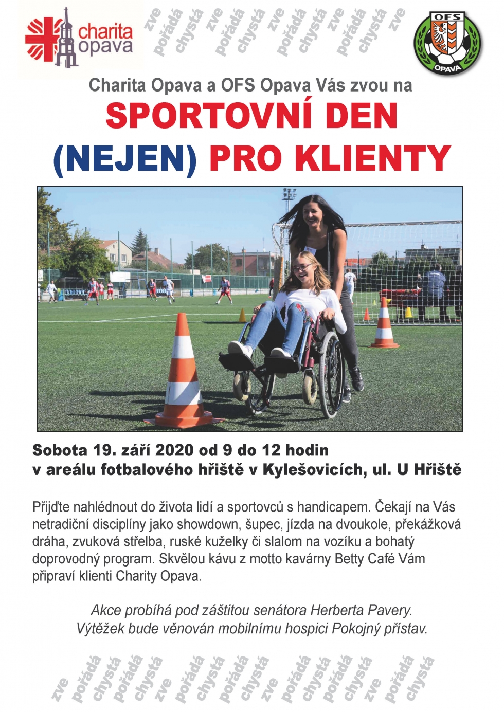 Předchozí dva ročníky této akce, na které si můžete změřit síly v disciplínách, určených lidem s handicapem, se setkaly s velkým zájmem malých i velkých návštěvníků. Kromě netradičních soutěží a atrakcí na všechny čeká občerstvení, například skvělá káva z motto kavárny Betty Café , kterou Vám připraví klienti Charity Opava. Každý ze soutěžících si také odnese diplom a originální medaili. Záštitu nad akcí, která potrvá do 12 hodin, převzal senátor Herbert Pavera.