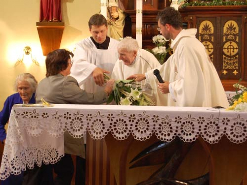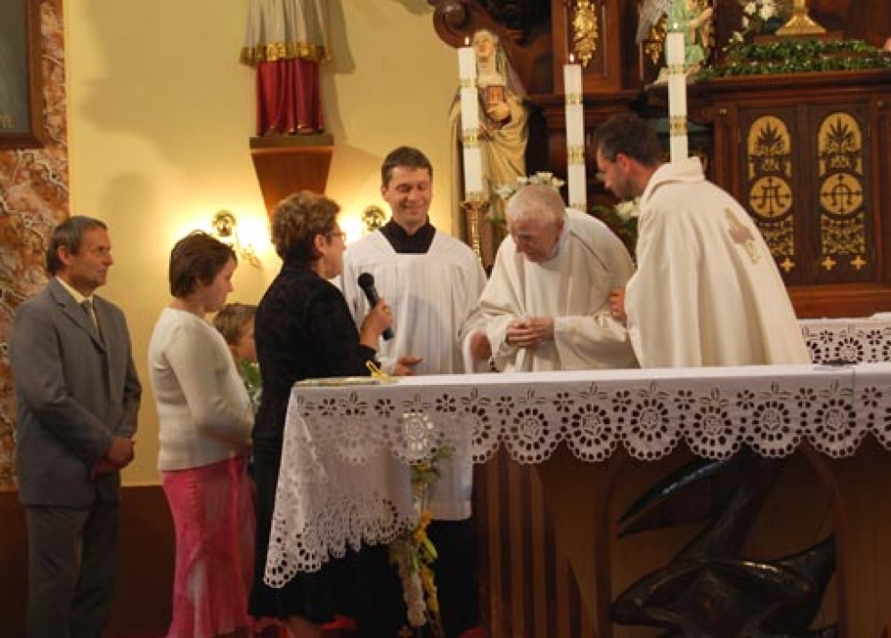 13.07.2007 - „Špatně vidím, špatně slyším, hůře se pohybuji, ale jsem tady s vámi,“ pronesl úvodem P. František Bureš 12. července 2007 v kostele sv. Josefa ve Štítné nad Vláří. Šedesát let uběhlo od primiční mše svaté, kterou 5. července 1947 otec František sloužil na stejném místě.