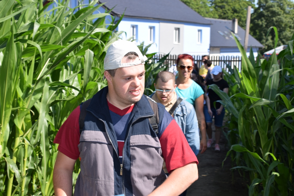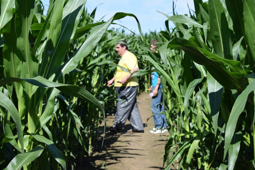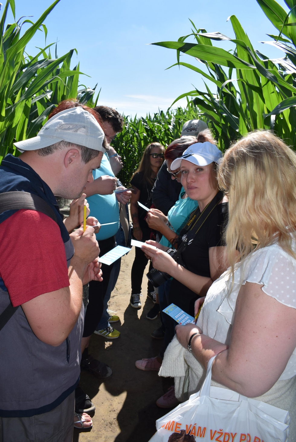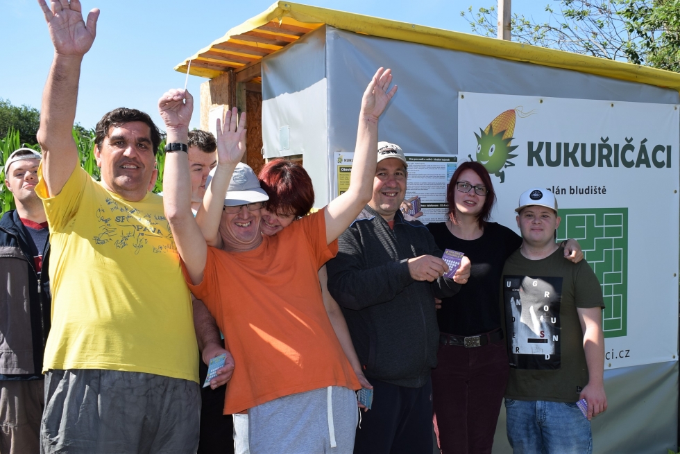 Patnáct klientů s doprovodem se rozdělilo na tři skupinky, aby v bludišti vzrostlé kukuřice, které je větší než fotbalové hřiště, hledalo tabulky s písmeny do skládačky. Jednotlivá písmena pak doplňovali do hrací kartičky. Úkolem bylo nejen najít všechna písmena a sestavit z nich tajenku, ale také nezabloudit a najít cestu zpět. Uspěli všichni, a tak si každý mohl odnést jako odměnu malý dárek v podobě odznaku s figurkou maskota bludiště kukuřičáka.