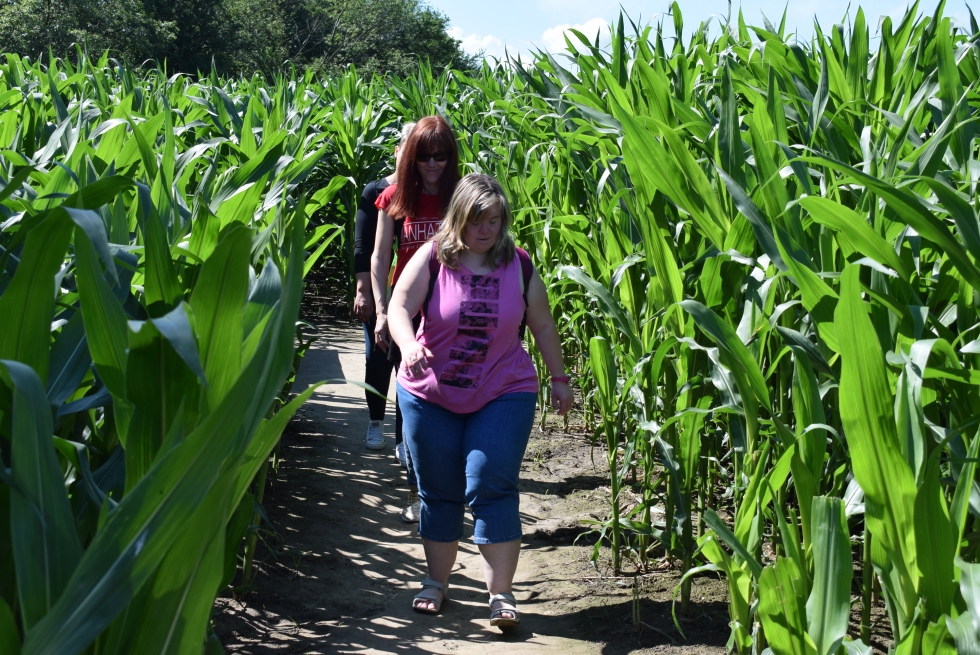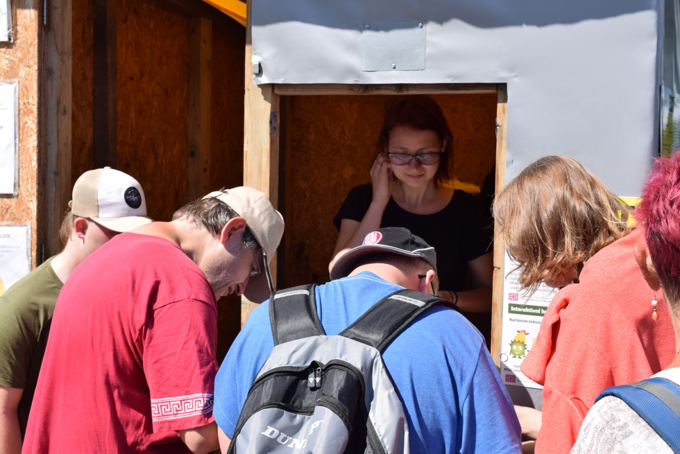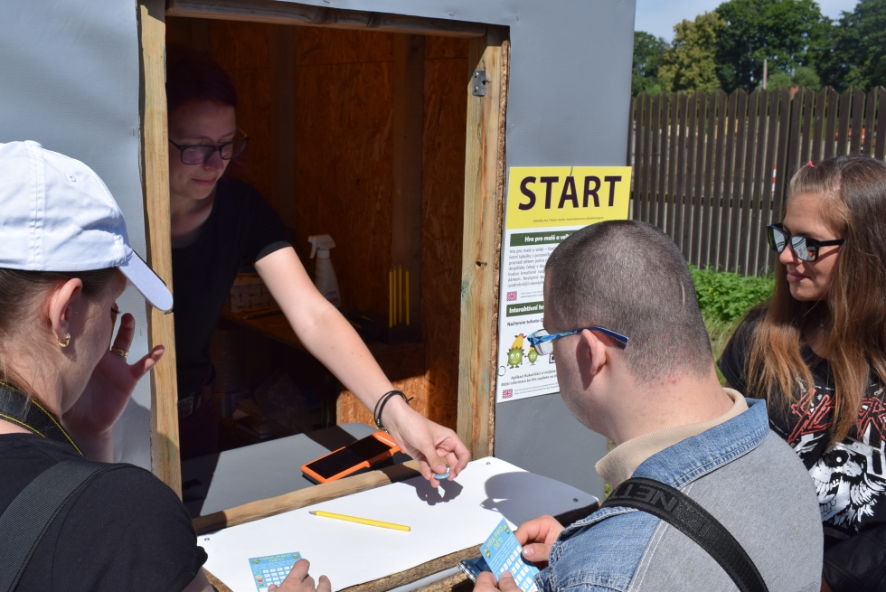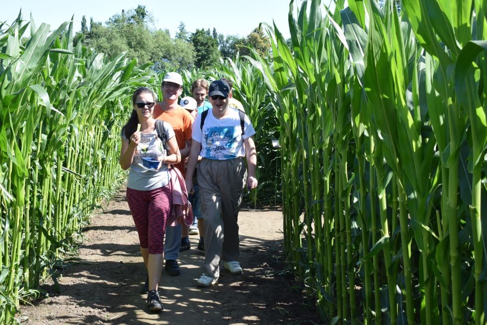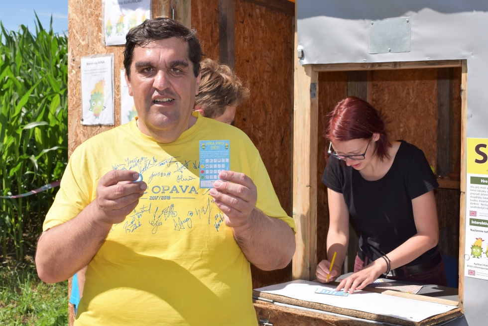 Patnáct klientů s doprovodem se rozdělilo na tři skupinky, aby v bludišti vzrostlé kukuřice, které je větší než fotbalové hřiště, hledalo tabulky s písmeny do skládačky. Jednotlivá písmena pak doplňovali do hrací kartičky. Úkolem bylo nejen najít všechna písmena a sestavit z nich tajenku, ale také nezabloudit a najít cestu zpět. Uspěli všichni, a tak si každý mohl odnést jako odměnu malý dárek v podobě odznaku s figurkou maskota bludiště kukuřičáka.