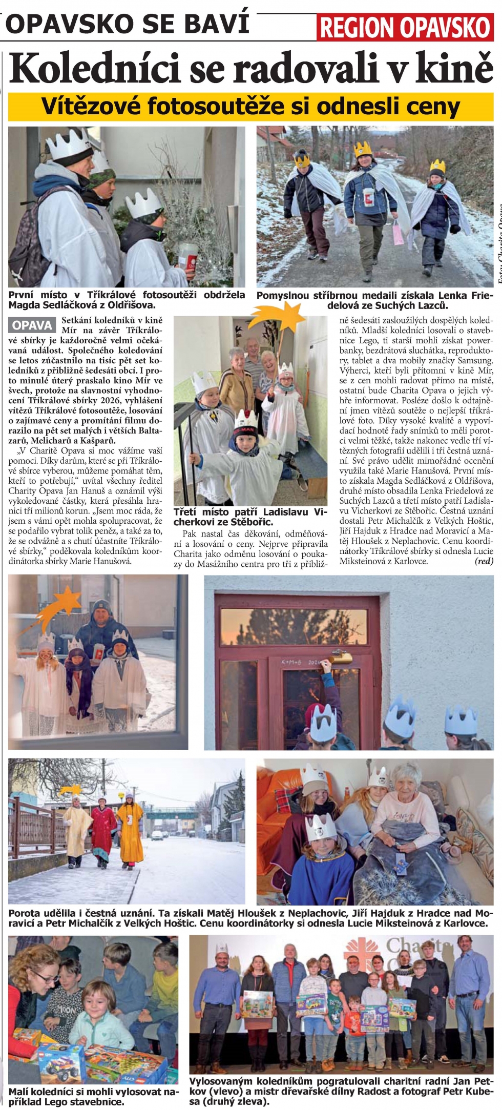 Nazmar ale nepřišla ani jedna ze zaslaných fotografií. Všechny jsme je před vyhlášením výsledků Tříkrálové sbírky promítali v kině Mír, ale najdete je také na webu Charity Opava. Podívejte se na ně, protože dohromady tvoři rozsáhlý obrazový dokument o velkém nasazení a ochotě stovek koledníků přidat se ke společnému dílu ku prospěchu dobré věci. A u toho vyhrávají všichni.
