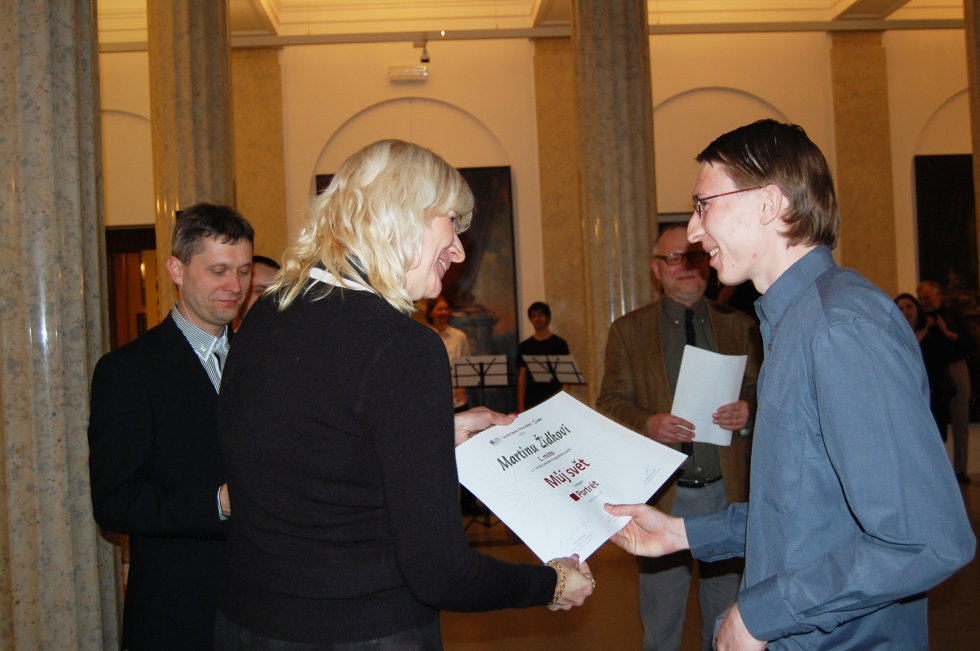 Muzeum se plnilo návštěvníky již dlouho před začátkem akce. Hosty uvítal v roli moderátora večera pedagog Institutu tvůrčí fotografie Slezské univerzity v Opavě a porotce soutěže Jiří Siostrzonek, který mimo jiné uvedl, že výstava souvisí se světem, v němž žijeme a že je důležité o tomto světě mluvit ze všech stran a pohledů. Po kulturním programu, v němž vystoupilo smyčcové kvarteto Základní umělecké školy Václava Kálika, došlo na předávání diplomů a cen oceněným autorům vítězných fotografií. Mezi vítězi jednotlivých kategorií nechyběli zástupci opavské Charity – Miroslava Baranová a Martin Žídek, který si udělal čas a přijel až z Prahy, kde nyní pracuje. Druhé místo v kategorii „Portrét“ získal pracovník Charity Nový Jičín Petr Vlček, který přivezl také kolegu a loňského vítěze kategorie „Jak to vidím já“ patnáctiletého Tondu Poláčka. Dodejme, že Charita Nový Jičín je mladá organizace, soutěže se letos účastnila již potřetí a pokaždé bodovala. Petr Vlček nám ke své fotografii řekl, že muž z jeho snímku je klientem zařízení, v němž pracuje a velice rád se fotí. Také se vyslovil pro zapůjčení putovní výstavy do Nového Jičína.