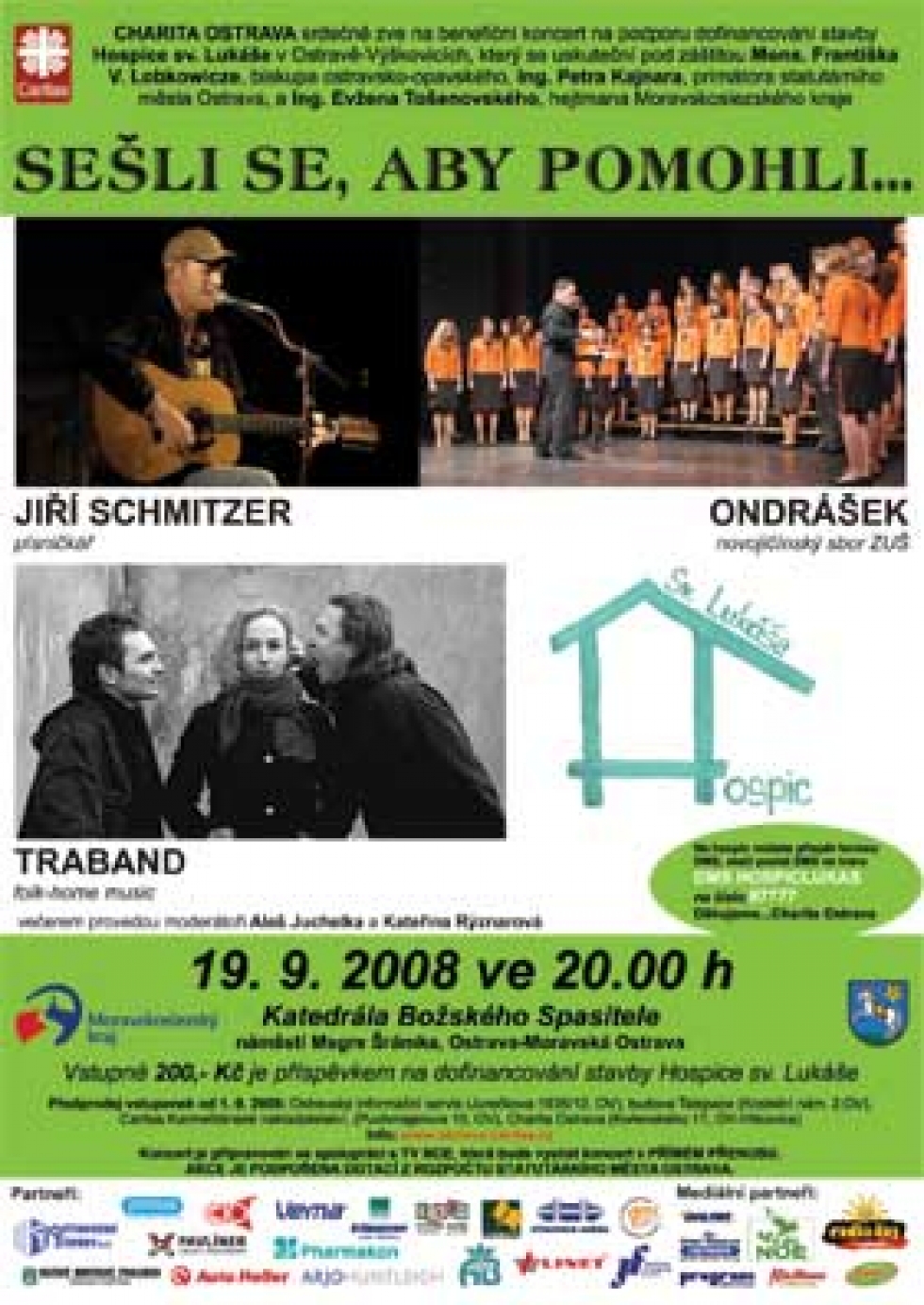 12.09.2008 - Charita Ostrava Vás zve 19. 9. 2008 ve 20.00 hodin do Katedrály Božského Spasitele v Ostravě na benefiční koncert na podporu HOSPICE SV. LUKÁŠE. Akci s názvem Sešli se, aby pomohli, podpoří známí umělci. Koncert bude také vysílán v přímém přenosu a reprízách TV NOE.