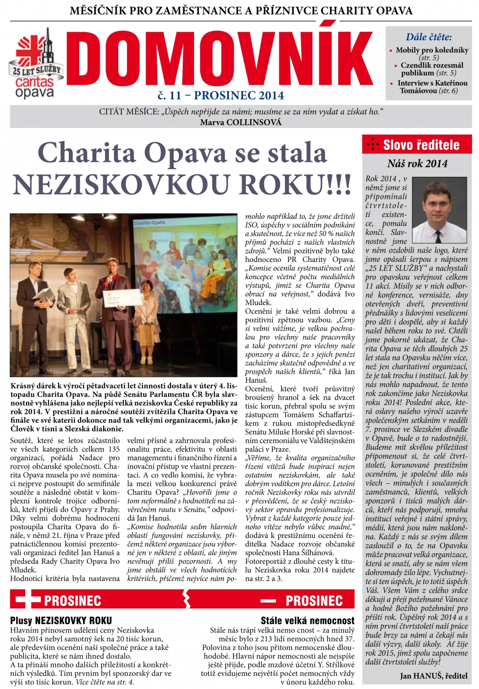 Poslední letošní Domovník se nese ve slavnostním duchu. Je totiž věnován z velké části závěru našeho jubilejního 25 roku existence, který byl završen získáním ceny Neziskovka roku 2014. Pěkné počtení!