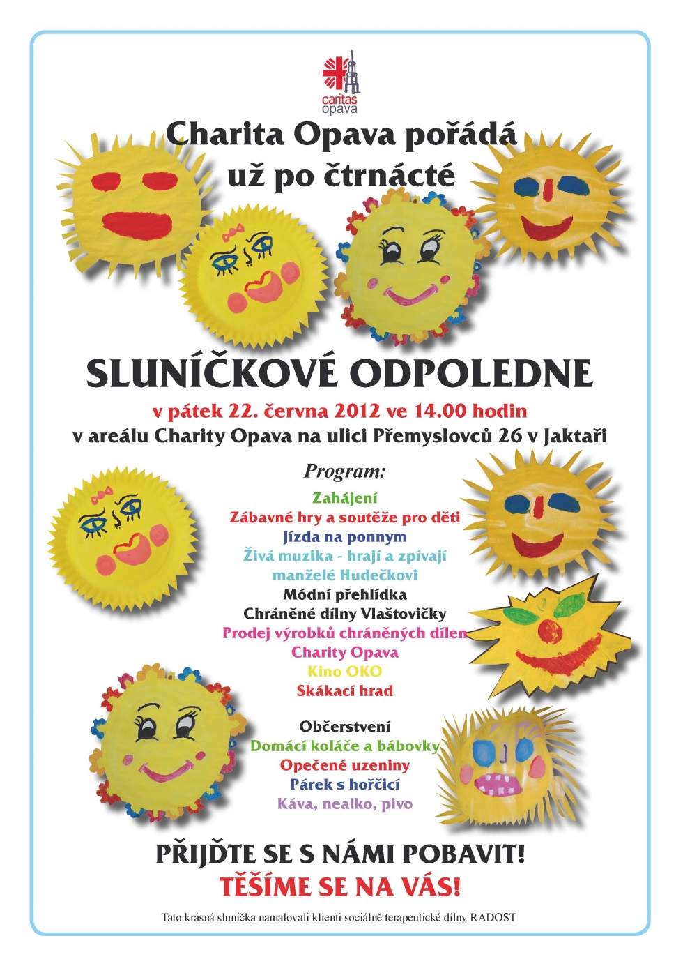 14.06.2012 - V pátek 22. června se v areálu Charity Opava v Opavě - Jaktaři uskuteční již 14. Sluníčkové odpoledne. Začátek ve 14 hodin. Srdečně zveme