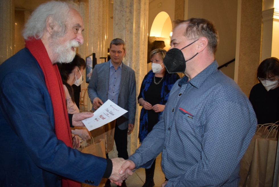 A spouště fotoaparátů cvakaly ještě dlouho po oficiálním ukončení vernisáže, protože nikdo z oceněných autorů si nechal ujít příležitost odnést si vedle diplomu a velkého zážitku také společnou fotografii s jednou z největších osobností naší fotografie Jindřichem Štreitem.