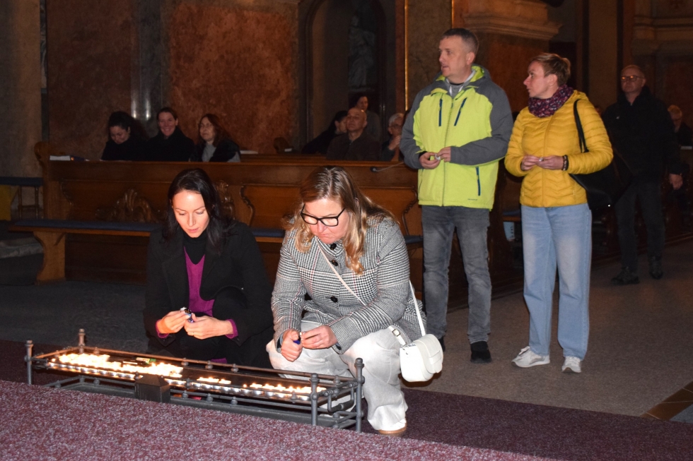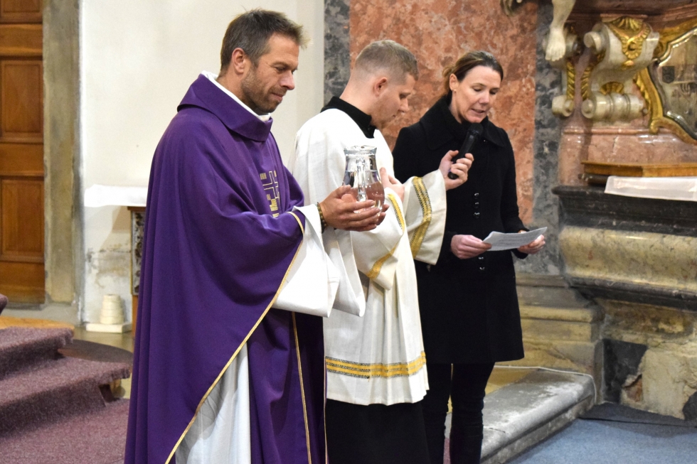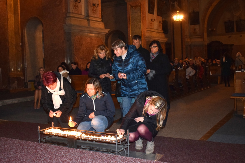„Rozhlížím se, a nevidím v kostelních lavicích žádné volné místo,“ dodal duchovní charitního mobilního hospice o. Klement Rečlo, který mši celebroval spolu s o. Víťou Řehulkou. Není se co divit, jen za prvních jedenáct měsíců letošního roku se tým Pokojného přístavu postaral o to, aby mohlo místo v neosobním nemocničním prostředí strávit poslední dny života doma na dvě stě třicet lidí z Opavy a okolí. Na připomínku toho, co společně s pozůstalými prožívají, přinášely zdravotní sestry hospice při přímluvách k oltáři jako symboly naděje, víry, utrpení či očisty svíci, květiny, vodu, Bibli a kříž.
