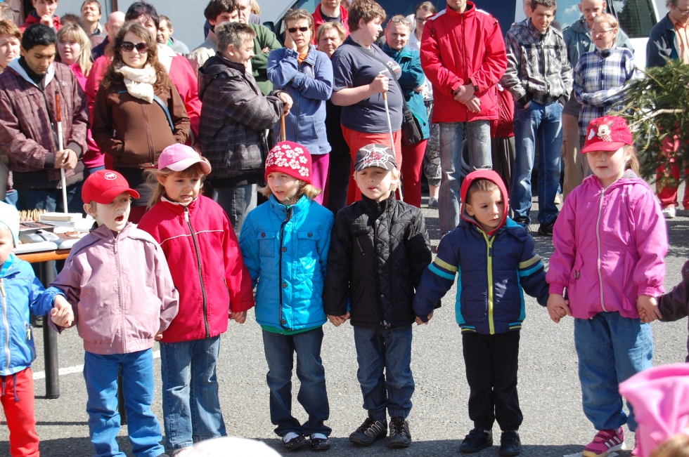 Na charitním nádvoří v areálu v Jaktaři se úderem desáté hodiny sešli zaměstnanci a klienti Radosti, Mravenečku a Domu sv. Cyrila a Metoděje. Na úvod promluvil ředitel Jan Hanuš a poté předvedly své vystoupení děti z Mateřské školy v Jaktaři. Zdobení májky se ujali klienti Radosti a pak už mohla být májka vztyčena.