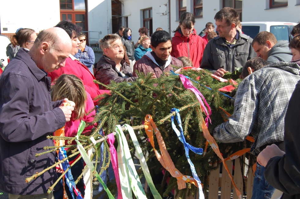 Stavění máje bylo v Charitě Opava naplánováno na středu 29. dubna. Po deštivém a studeném úterku se všichni obávali, jaké bude počasí. Ale už ráno se na oblohu vyhouplo sluníčko a bylo po strachu.