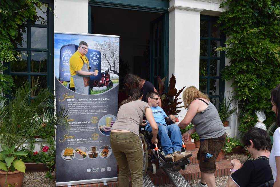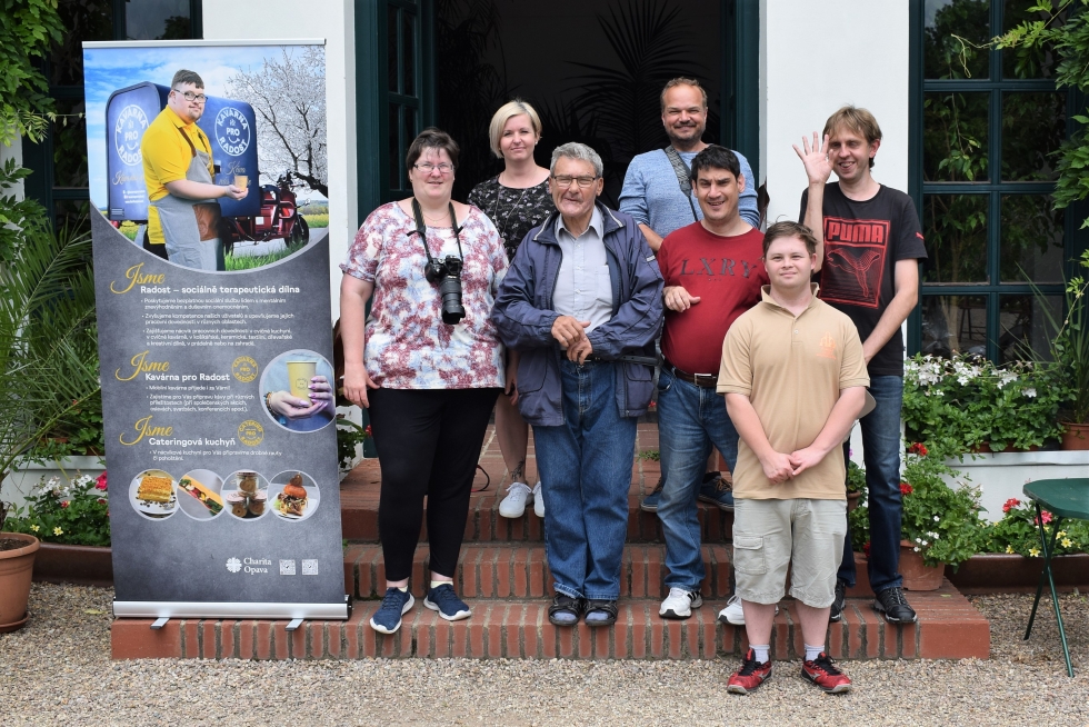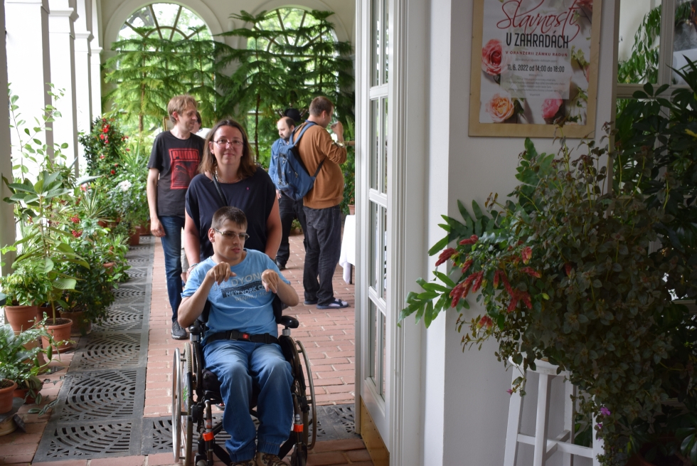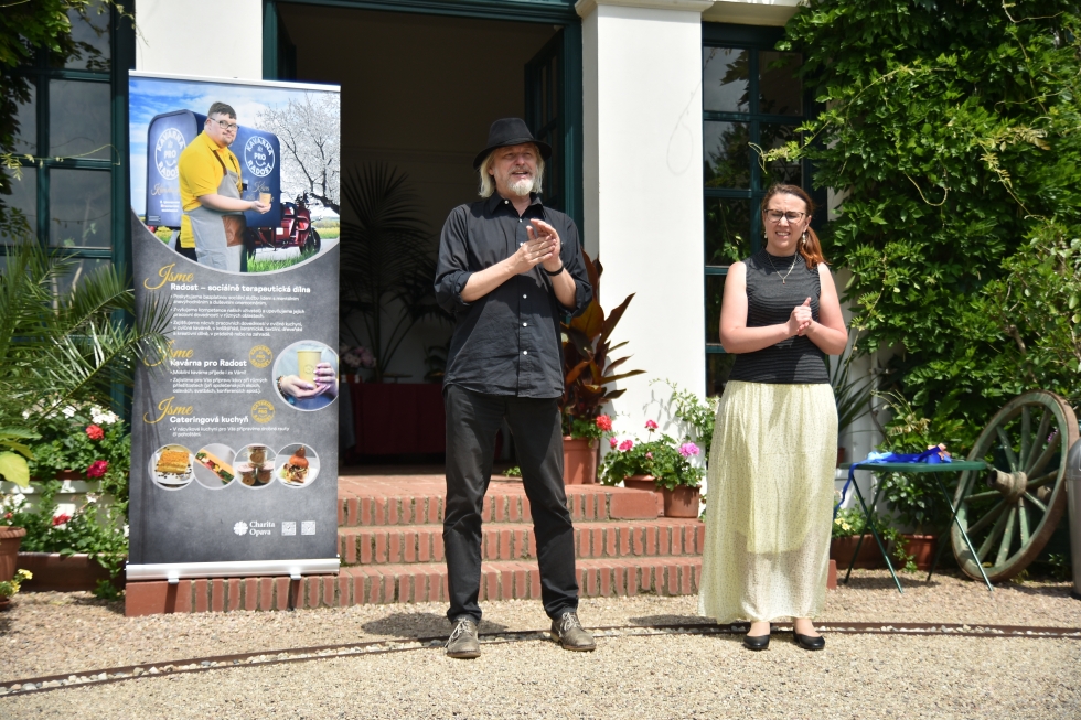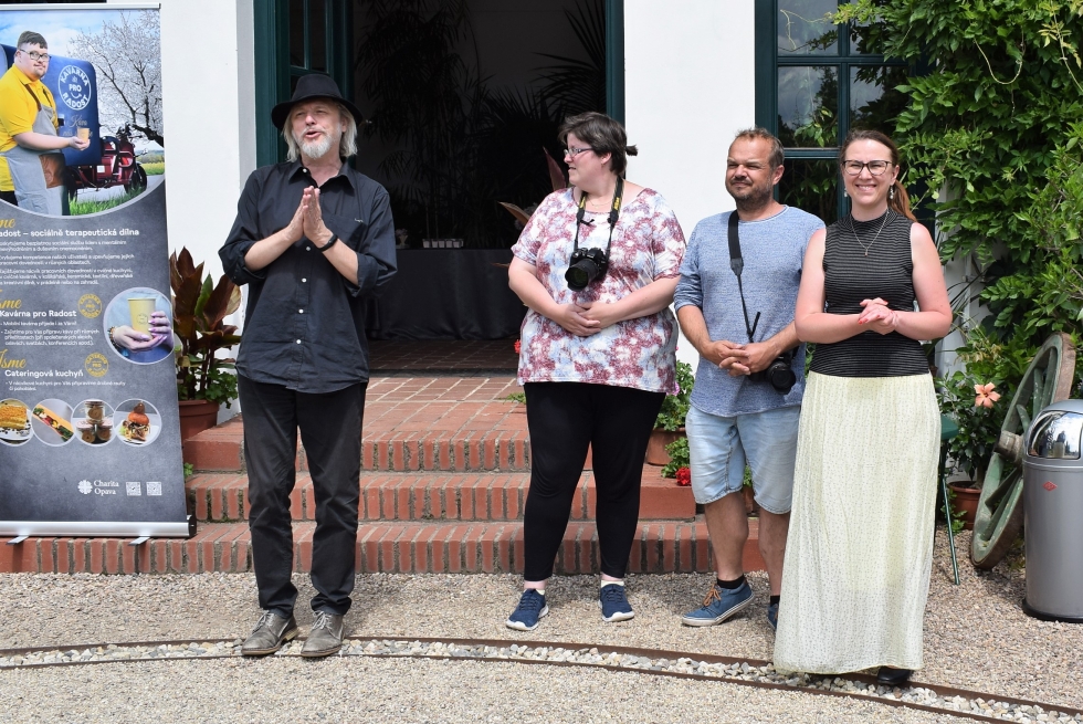 Výstavu v oranžerii pak společně s kastelánkou Markétou Kouřilovou symbolicky otevřeli dva přítomní medailisté letošního ročníku fotosoutěže. Vedle klientky Radosti Jany Hertlové, jejíž snímek ocenila porota v čele s patronem soutěže prof. Jindřichem Štreitem v kategorii „Jak to vidím já“ druhým místem, to byl také vítěz kategorie Portrét, pracovník Radosti Petr Kubesa.