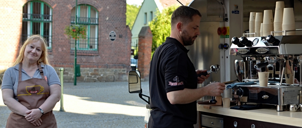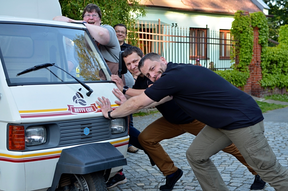Majitelé speciální pojízdné kavárničky Betty Café nabídli charitním klientům, že by si mohli zopakovat roli číšníků, kterou tak úspěšně zvládali v loňském roce v Kavárně pro Radost v opavském obchodním centru Silesia. A protože klienty nabídka nadchla, hned si plácli. Návdavkem pak přišla nabídka sponzorského daru pro Charitu Opava, jehož výše bude záležet také na návštěvnících Hradeckého slunovratu. Desetikoruna z každé prodané kávy totiž připadne právě Charitě Opava.