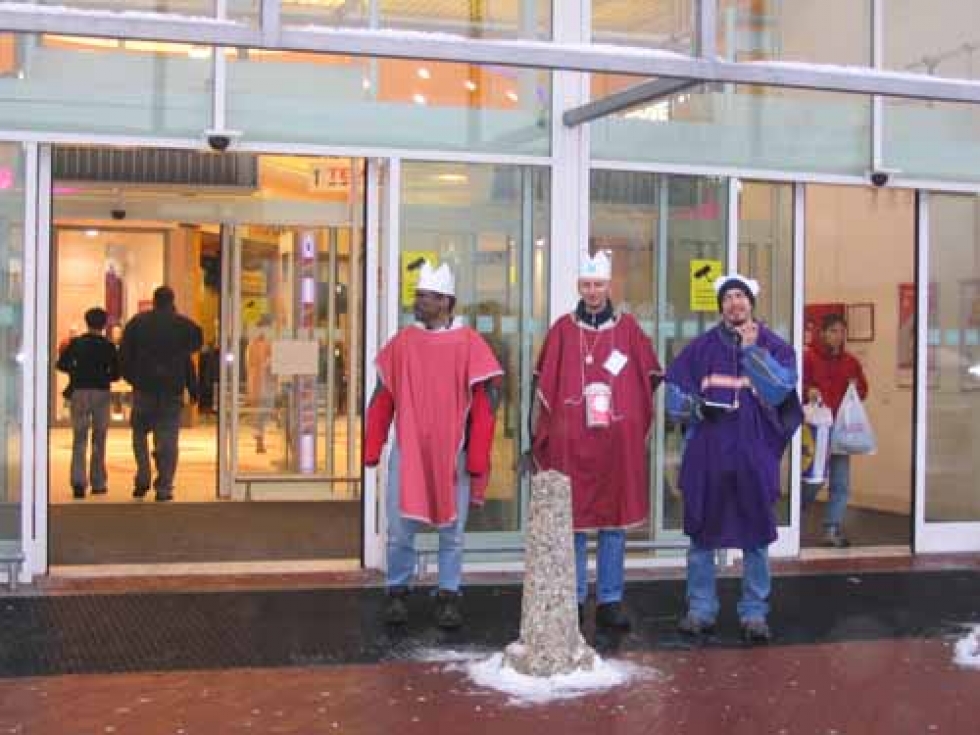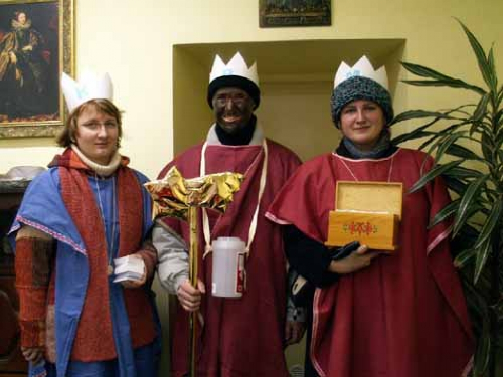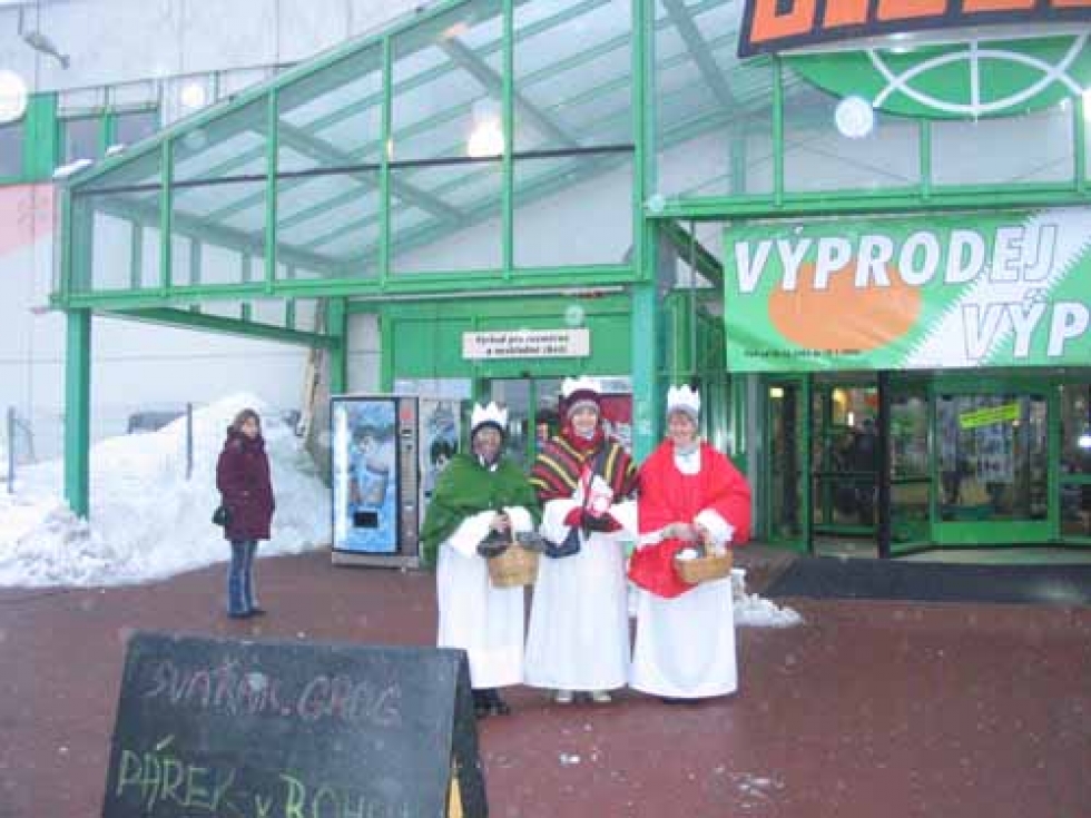 09.01.2006 - Na svátek Zjevení Páně 6. 1. koledovali zaměstnanci Charity Opava před opavskými supermarkety, na velkých sídlištích a v centru města.