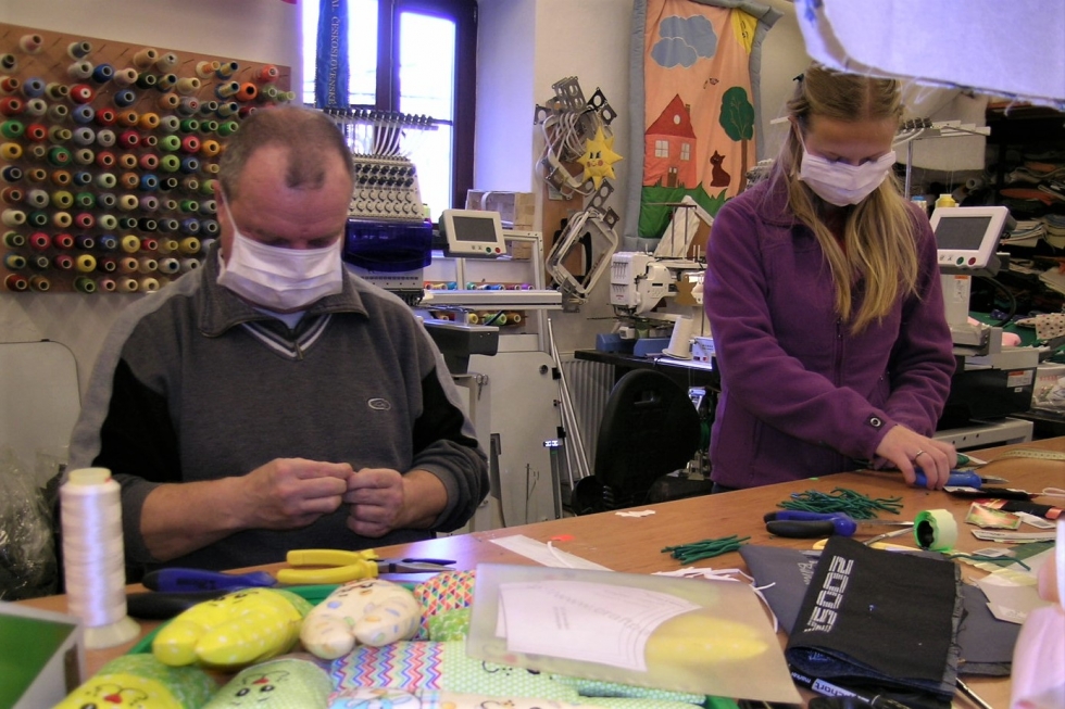 Dílny také zájemcům nabízejí ke koupi za výrobní cenu polotovar pro vlastní ušití roušek s kapsou - sada za 32 korun obsahuje obdélník stoprocentní bavlněné látky o rozměrech 39x29 cm a dva metry šikmého proužku. Zakoupit si ho můžete v chráněných dílnách ve Vlaštovičkách či Jaktaři a také v prodejně Optiky na Ostrožné ulici (naproti prodejně Stoklasa.
